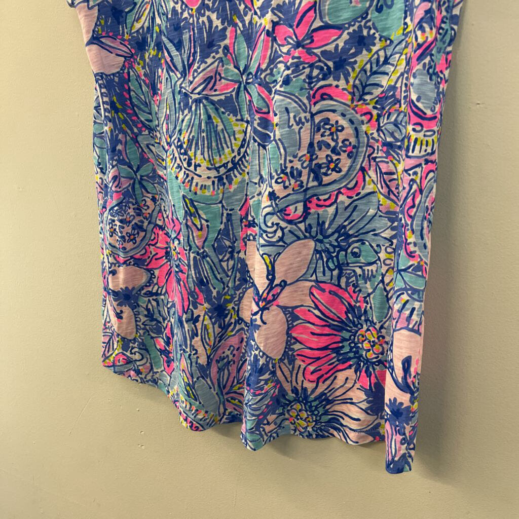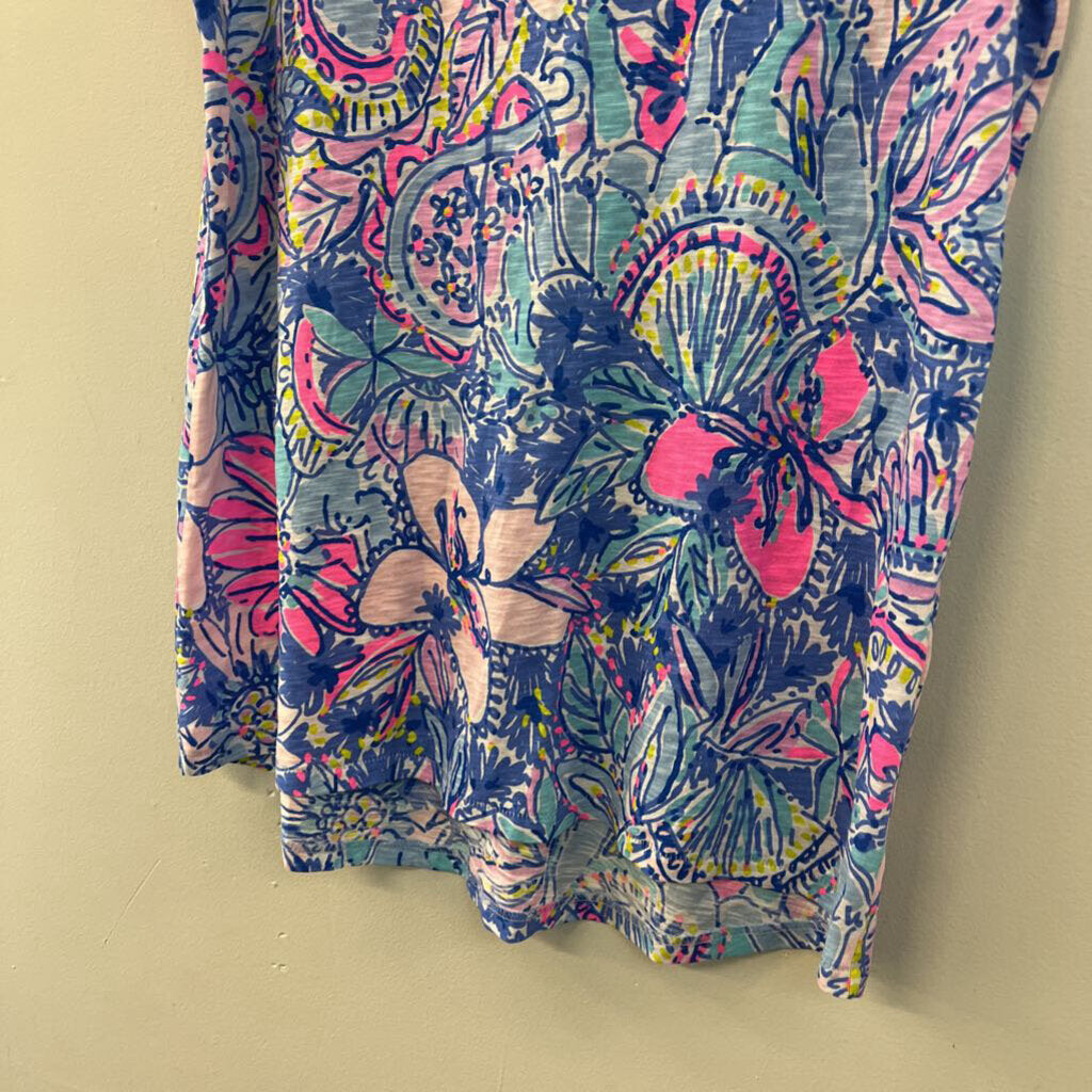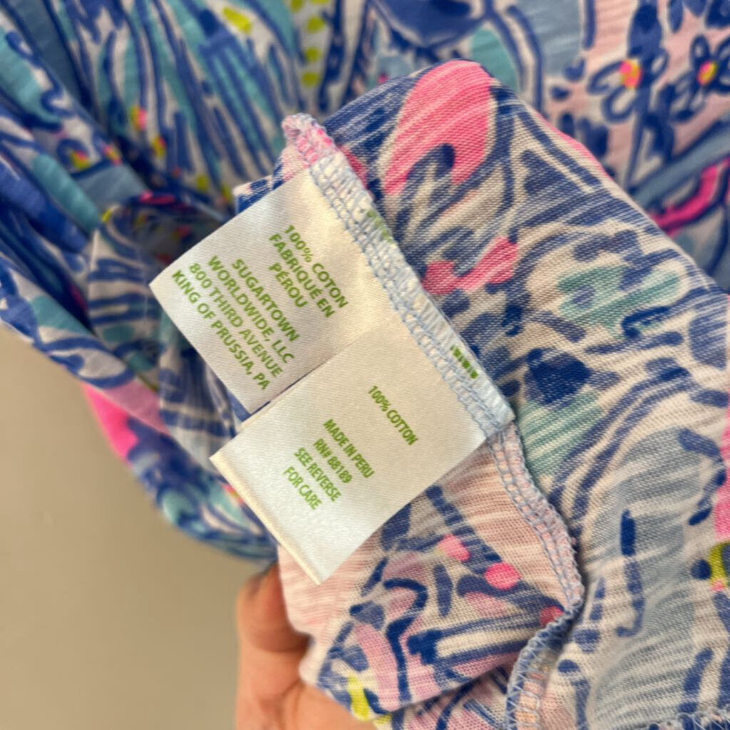 Lilly Pulitzer Blue/ Multi Print Short Sleeve Top Small