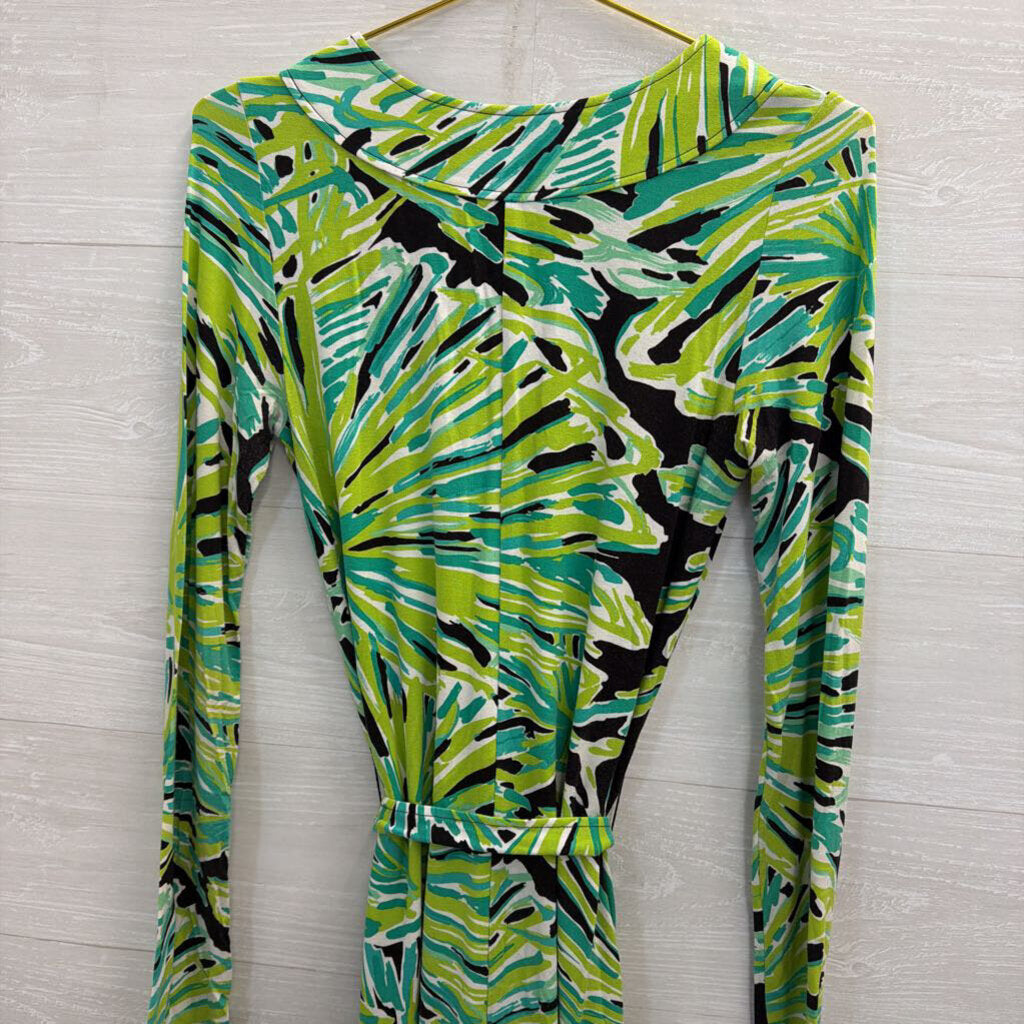 Lilly Pultizer Green/ Multi Print Ophelia Swing Long Sleeve Tie Waist Dress Small
