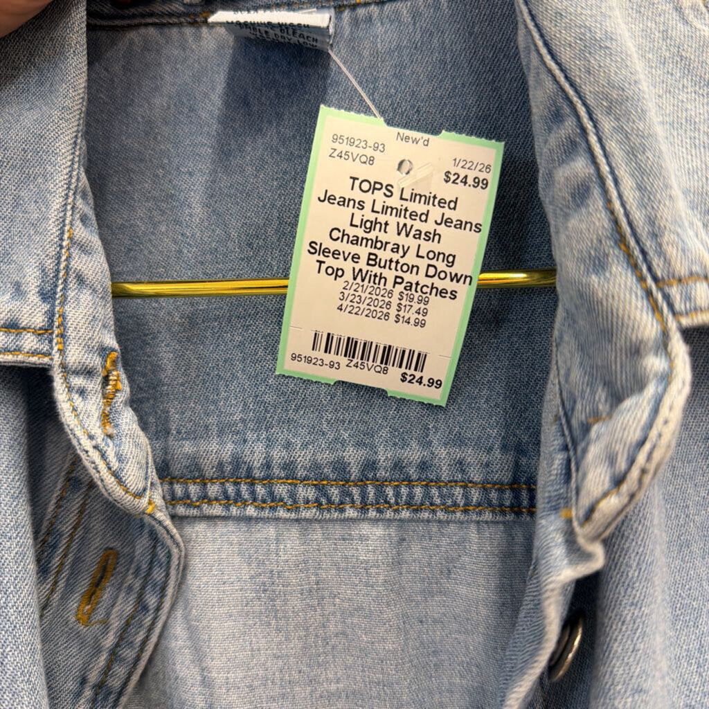 Limited Jeans Light Wash Chambray Long Sleeve Button Down Top With Patches Medium