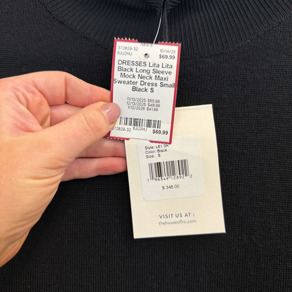 Lita Black Long Sleeve Mock Neck Maxi Sweater Dress Small