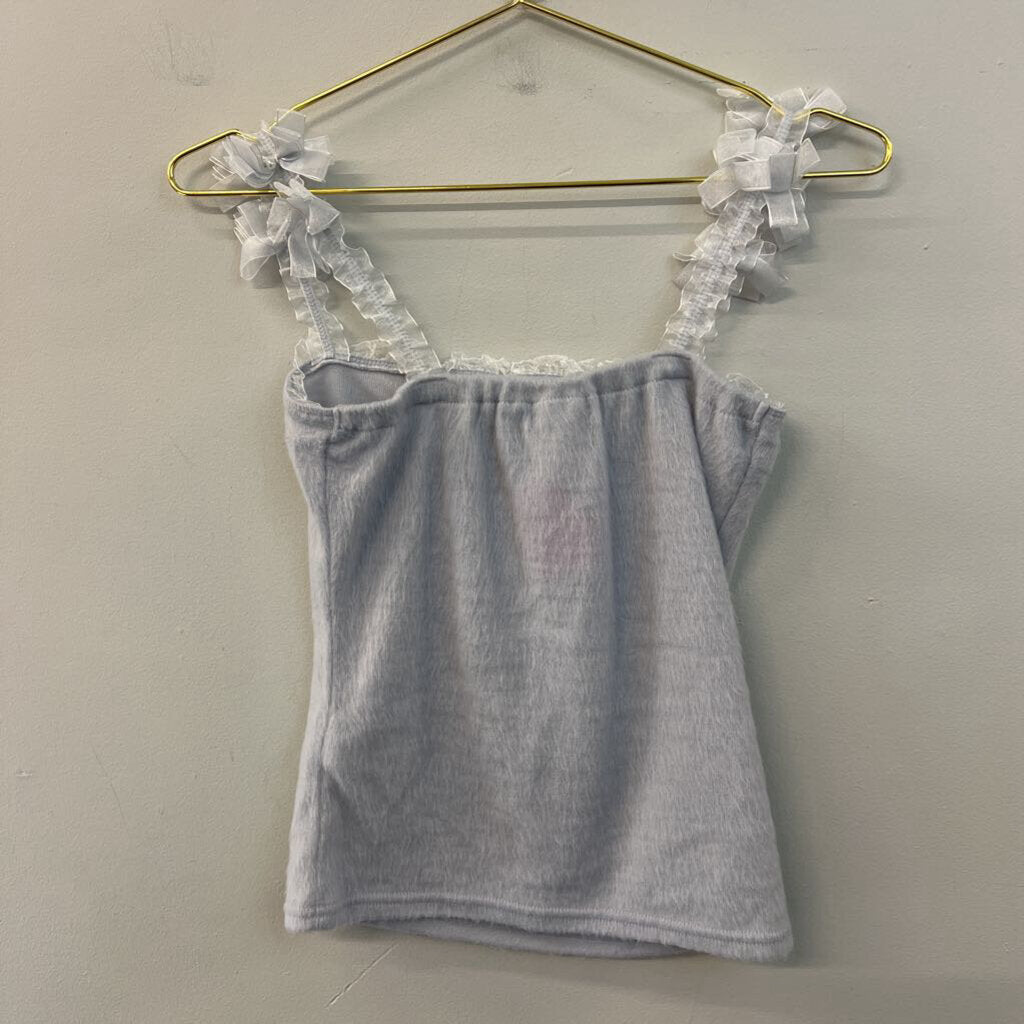 Liz Lisa Blue Soft Ruffle Pearl Strap Tank Top Small