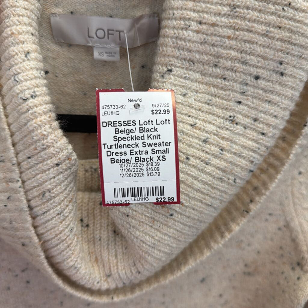 Loft Beige/ Black Speckled Knit Turtleneck Sweater Dress Extra Small
