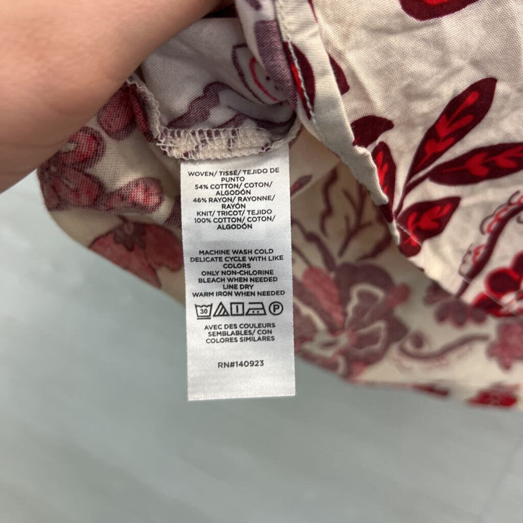 Loft Beige/ Red Flower Print Long Sleeve Top Small