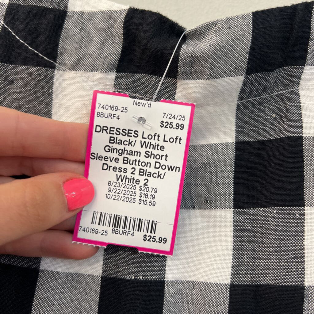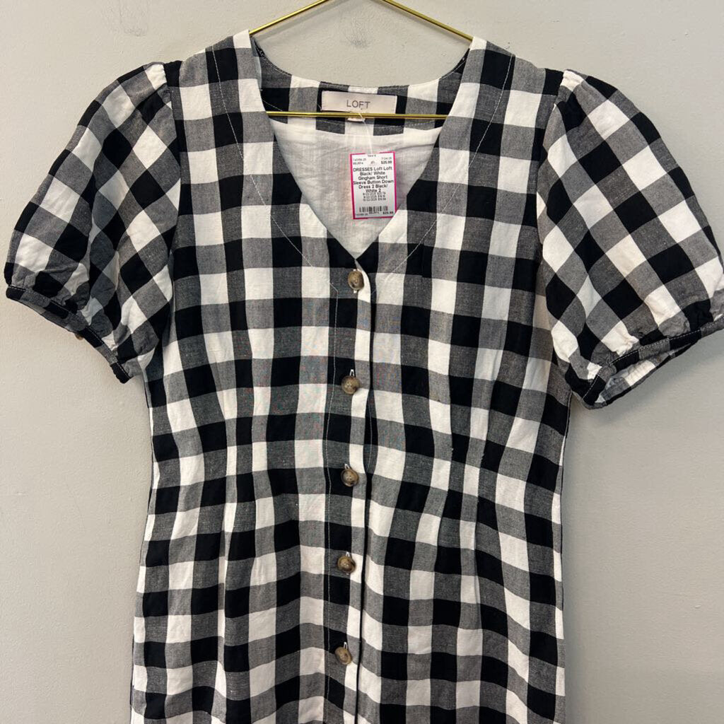 Loft Black/ White Gingham Short Sleeve Button Down Dress 2