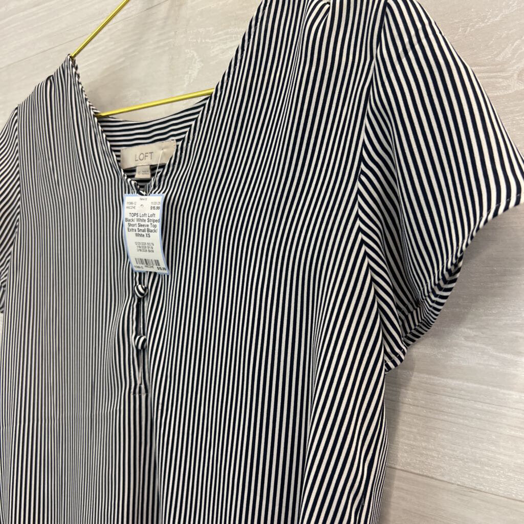 Loft Black/ White Striped Short Sleeve Top Extra Small