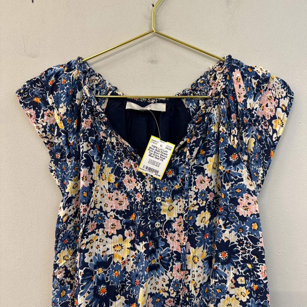Loft Blue/ Multi Flower Print Short Sleeve Top Extra Small