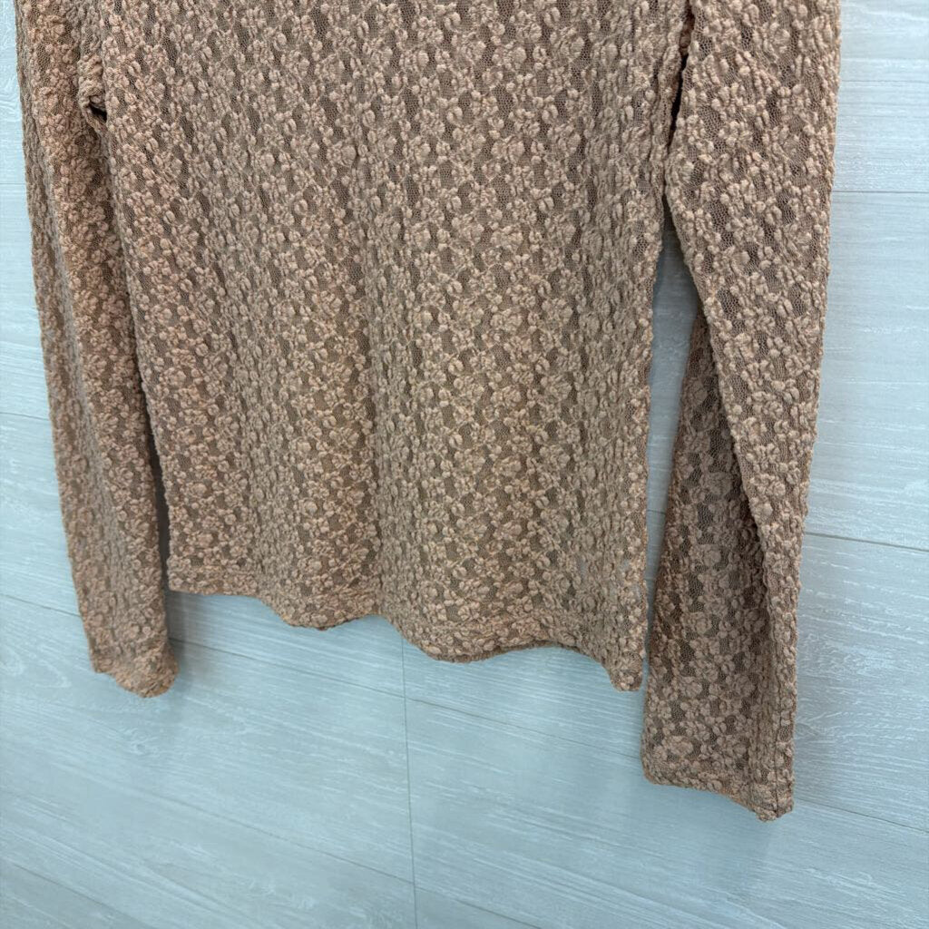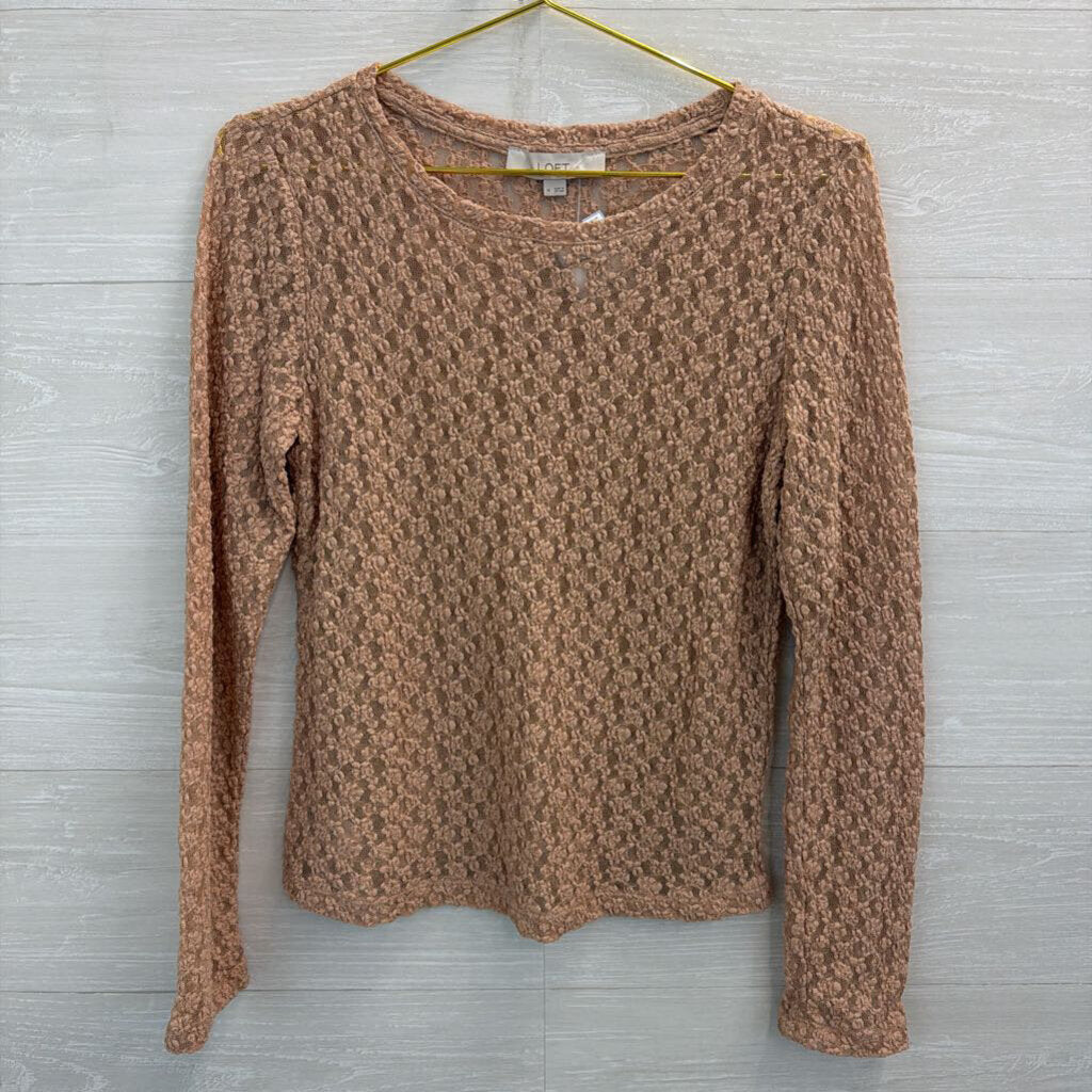 Loft Brown Textured Mesh Long Sleeve Top Medium