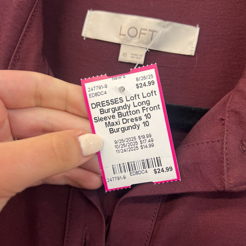 Loft Burgundy Long Sleeve Button Front Maxi Dress 10