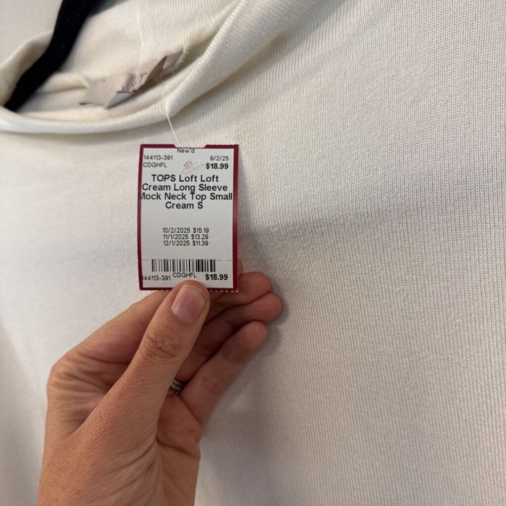 Loft Cream Long Sleeve Mock Neck Top Small