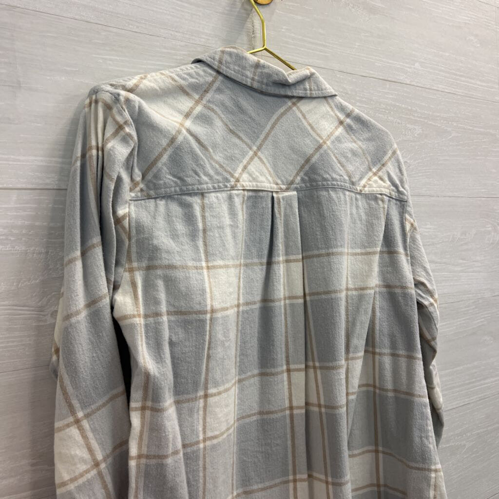 Loft Grey Plaid Long Sleeve Button Down Top Medium