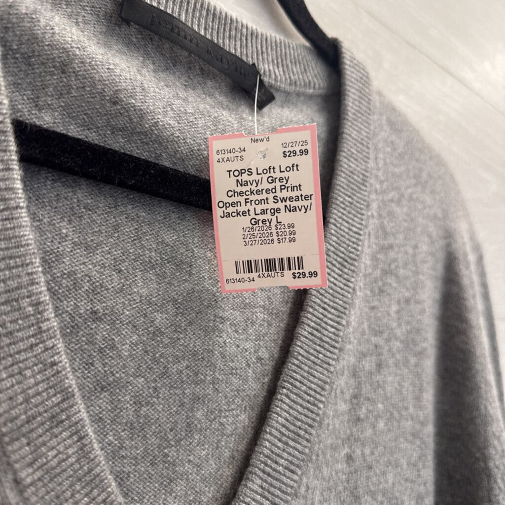 Loft Navy/ Grey Checkered Print Open Front Sweater Jacket Large
