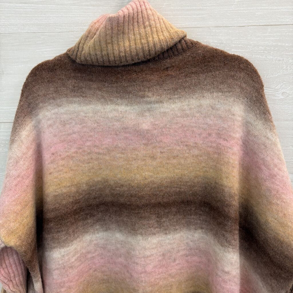Loft Pink/ Brown Striped Knit Turtleneck Sweater Small