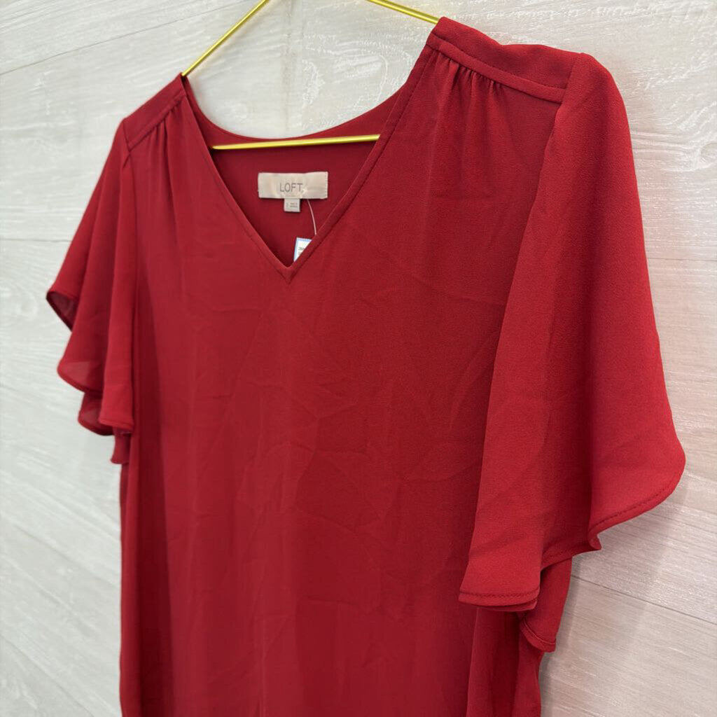 Loft Red Short Flutter Sleeve Top Small