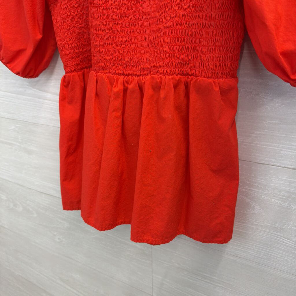 Loft Red Short Puff Sleeve Top Medium
