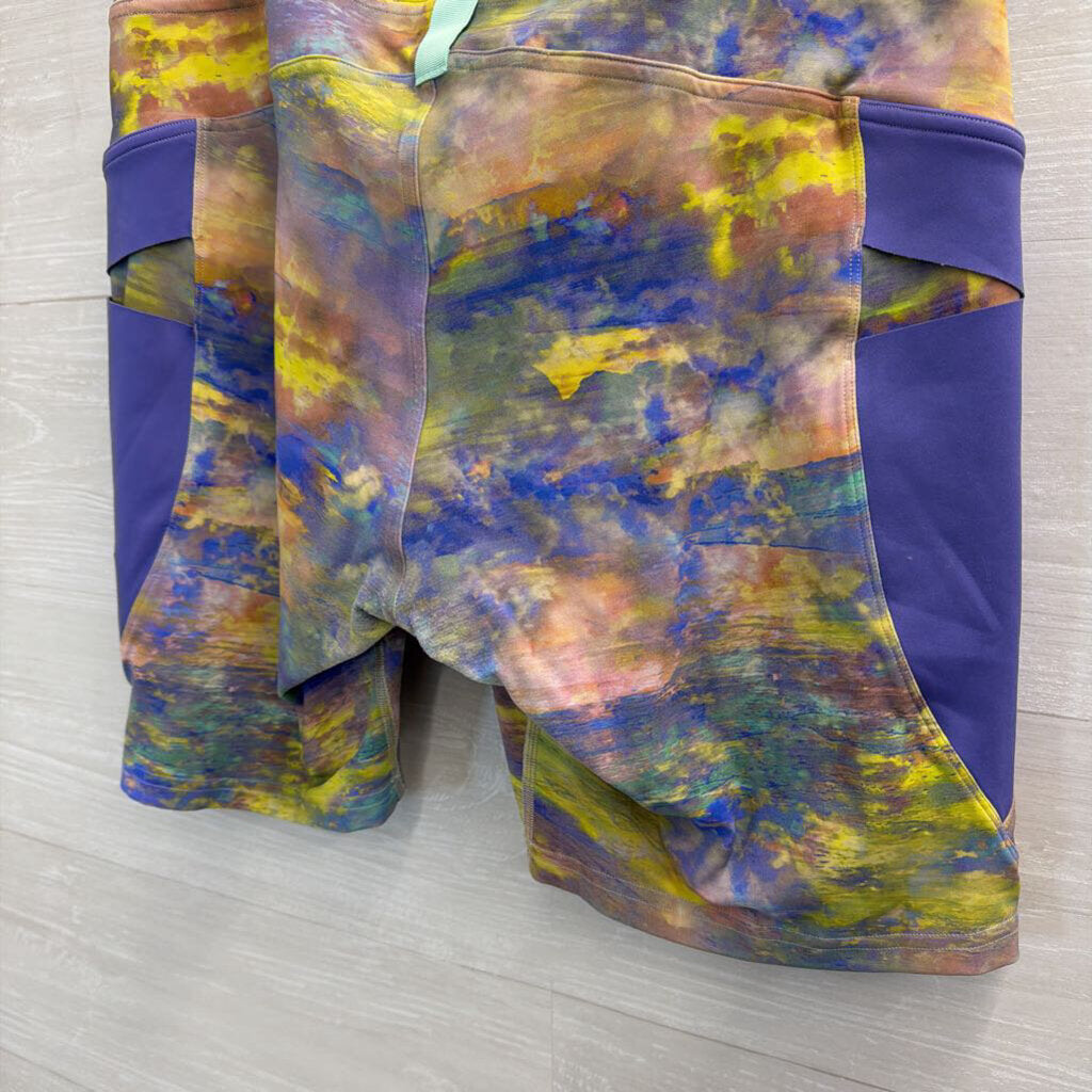 Lululemon Fast and Free Super High Rise Cargo Hiking Watercolor Bike Shorts 12