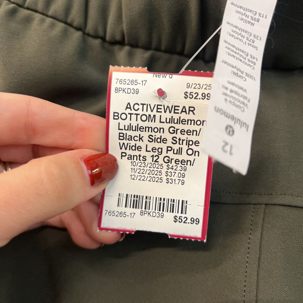 Lululemon Green/ Black Side Stripe Wide Leg Pull On Pants 12