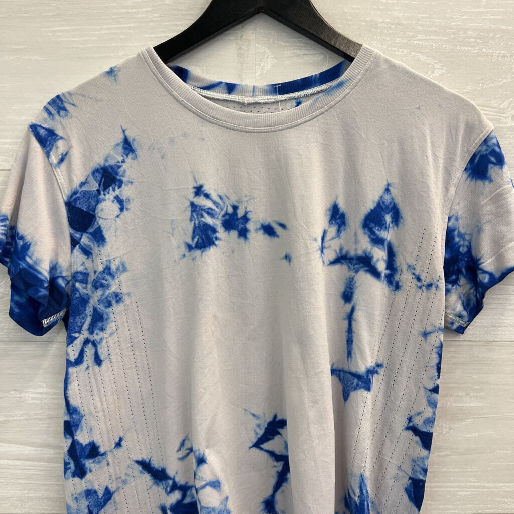 Lululemon White/ Blue Tie Dye Cropped Short Sleeve Top Small