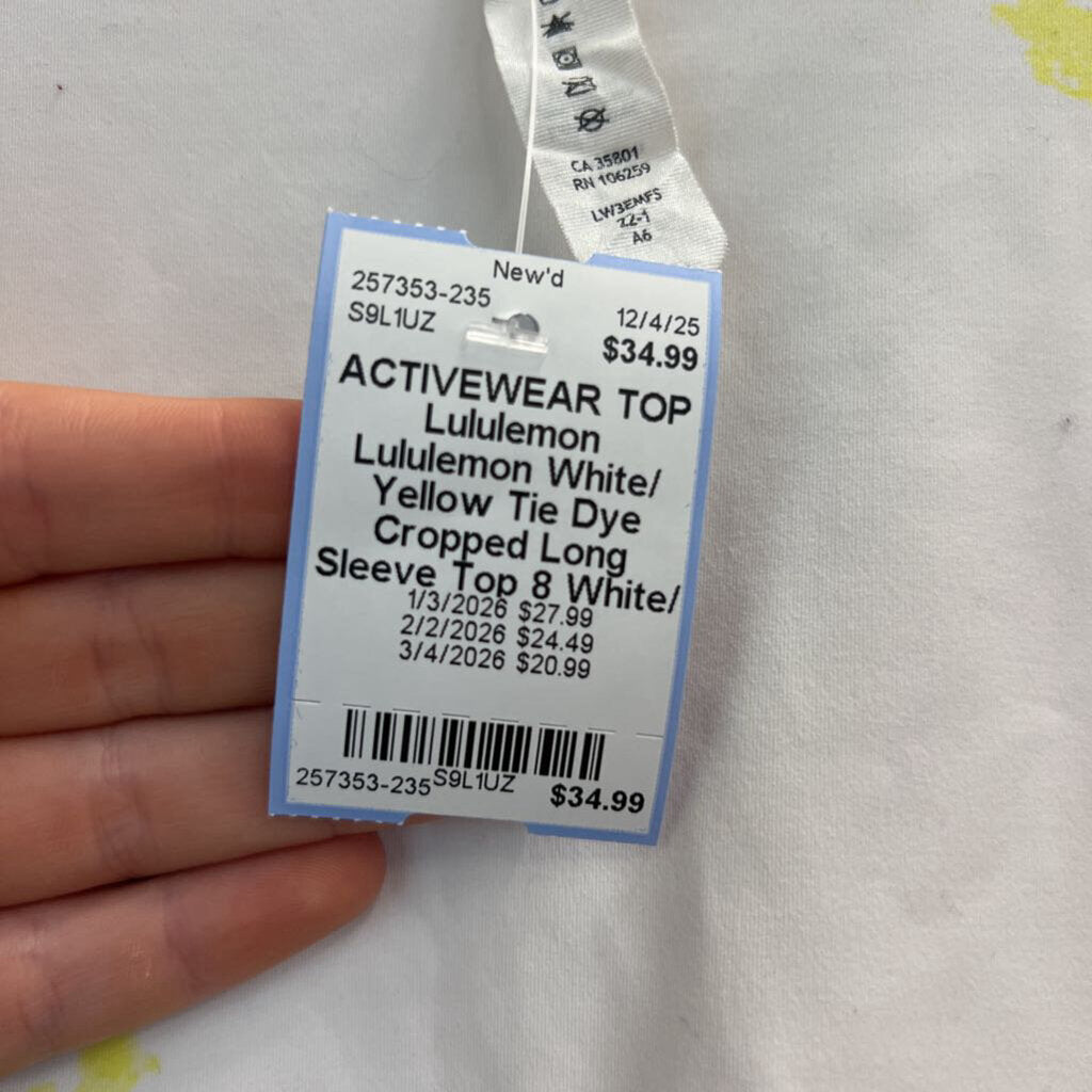 Lululemon White/ Yellow Tie Dye Cropped Long Sleeve Top 8