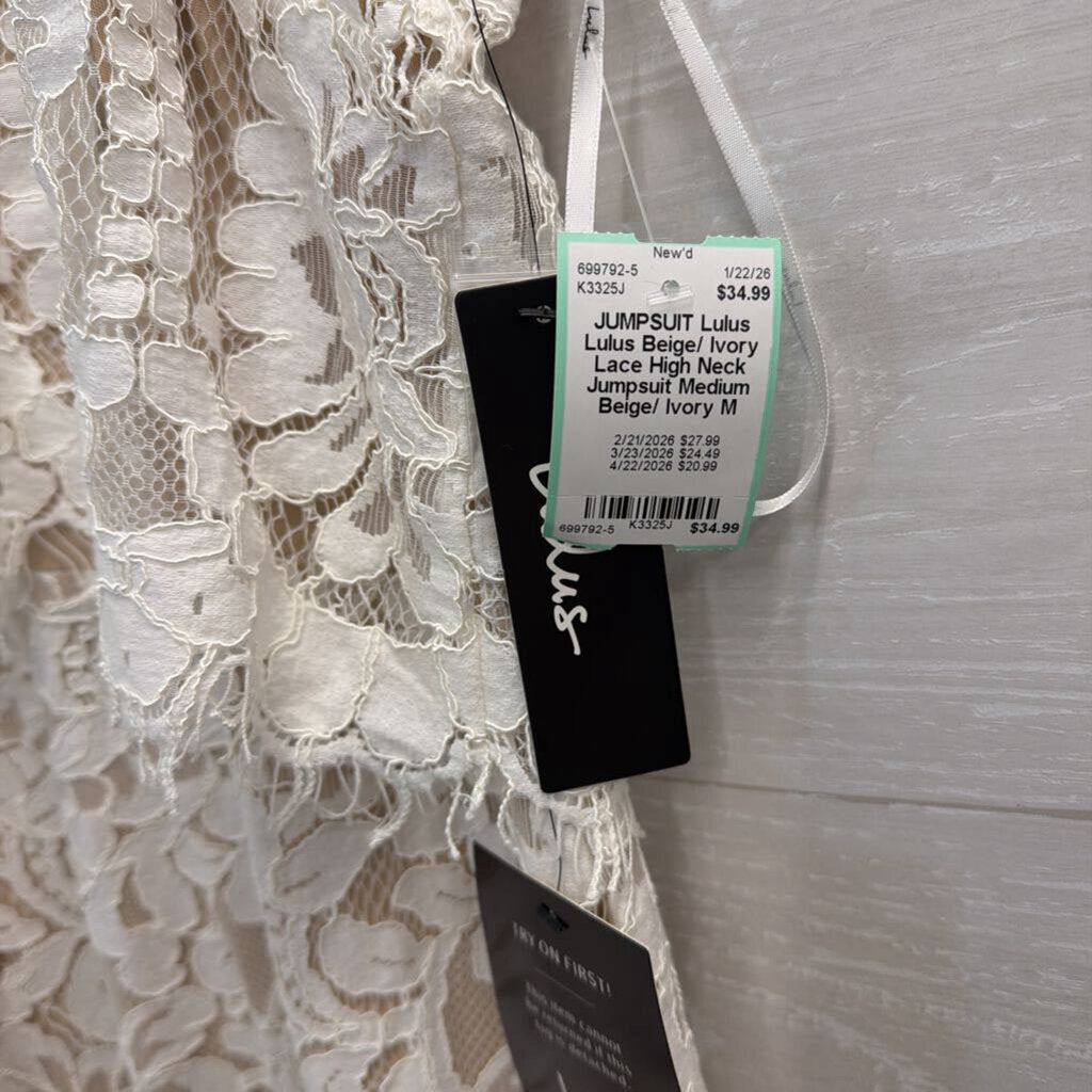 Lulus Beige/ Ivory Lace High Neck Jumpsuit Medium