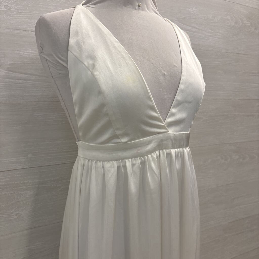 Lulu's Ivory Silky Simple Halter Bridal Gown Medium