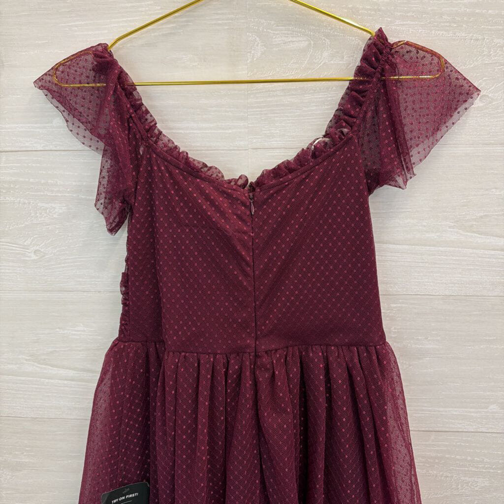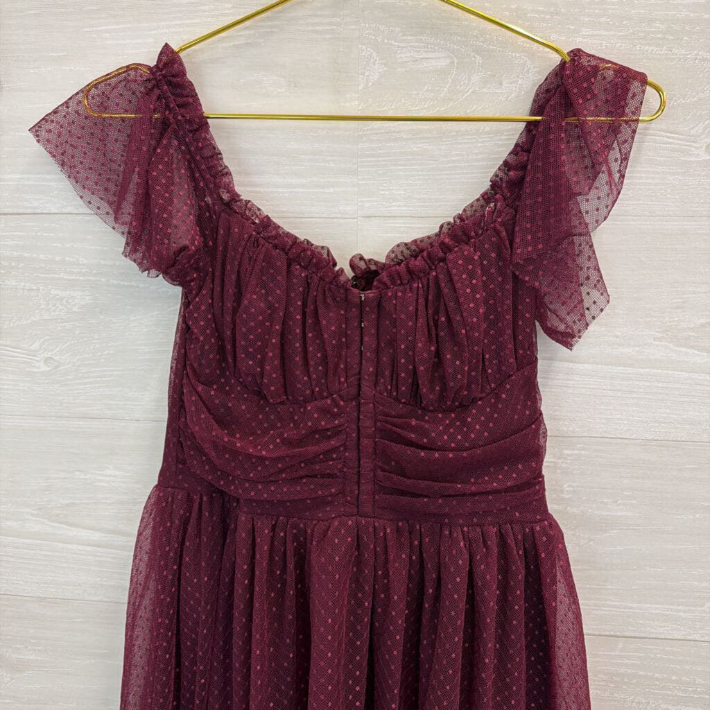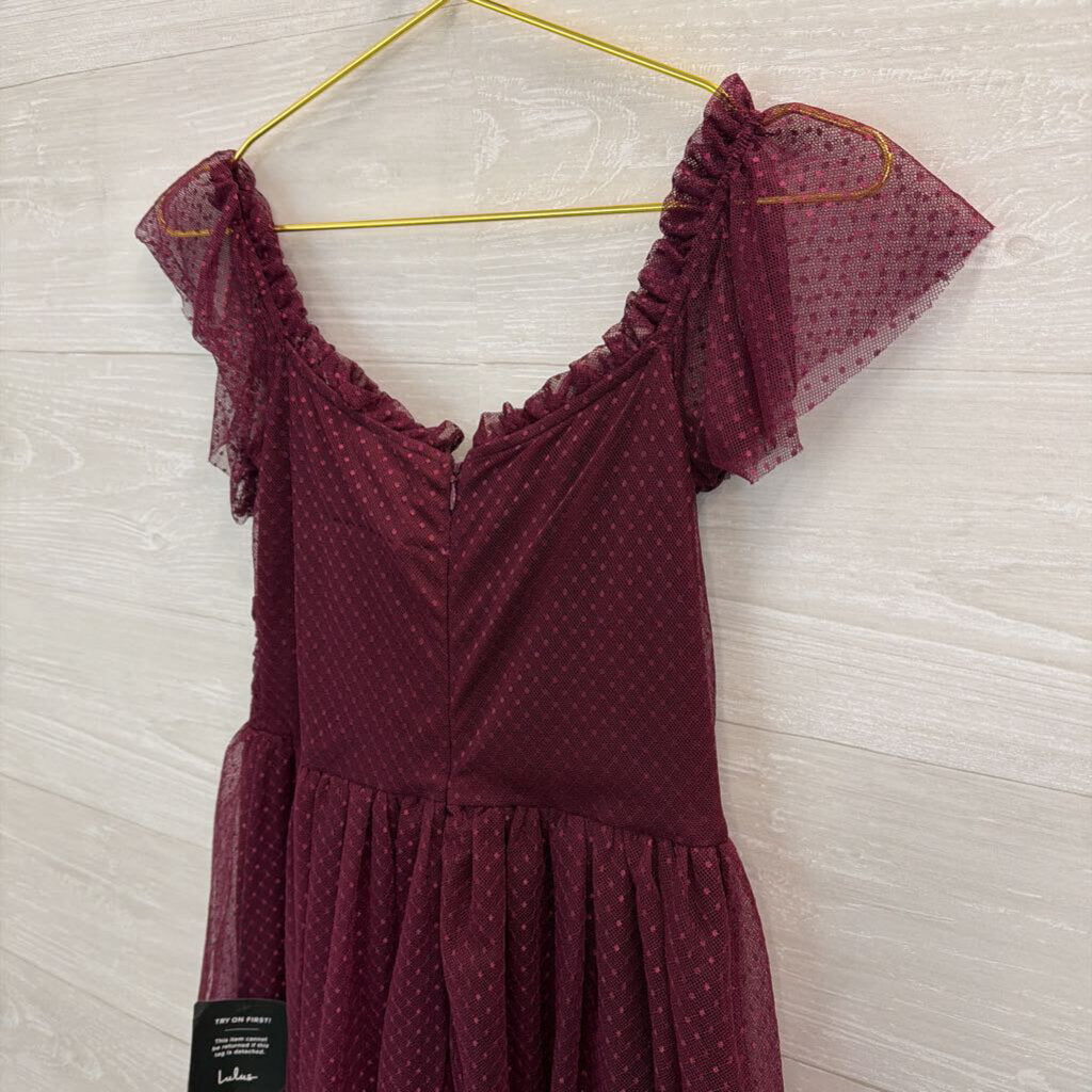 Lulus Purple Polka Dot Tulle Flutter Short Sleeve Midi Dress Medium