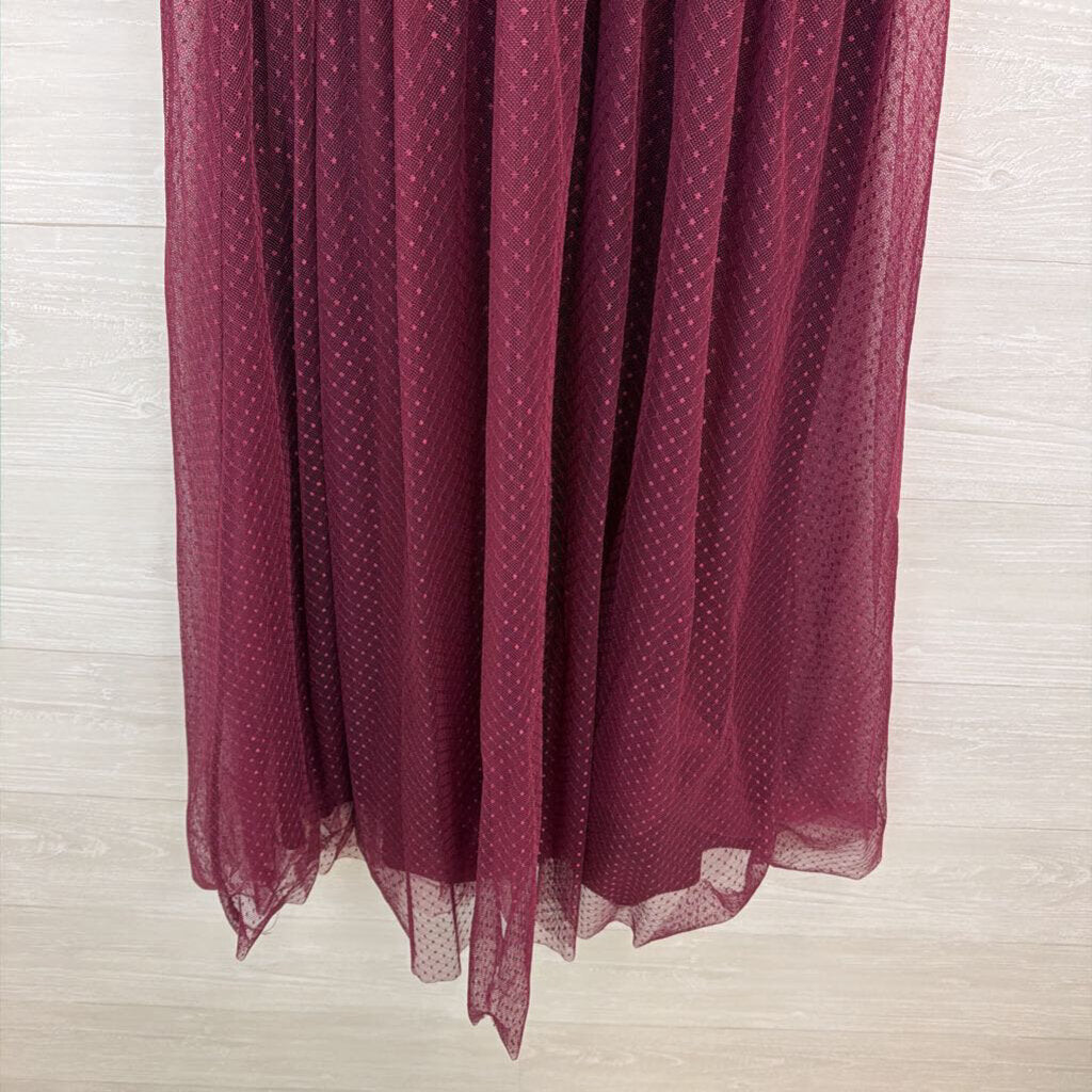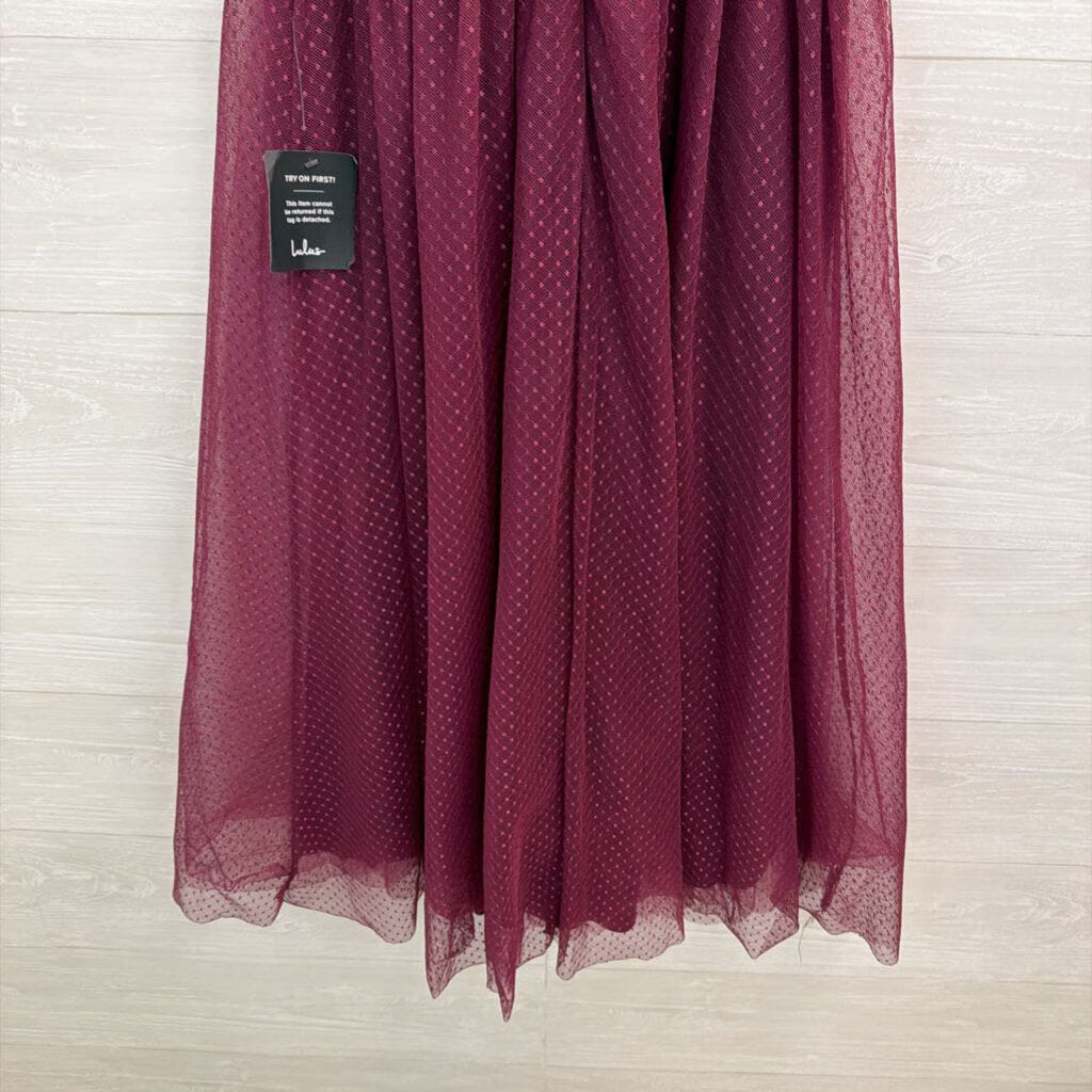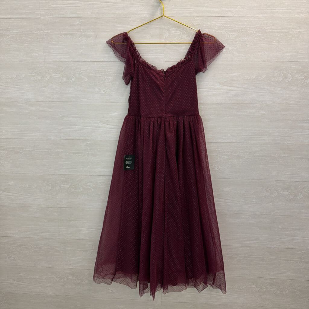 Lulus Purple Polka Dot Tulle Flutter Short Sleeve Midi Dress Medium