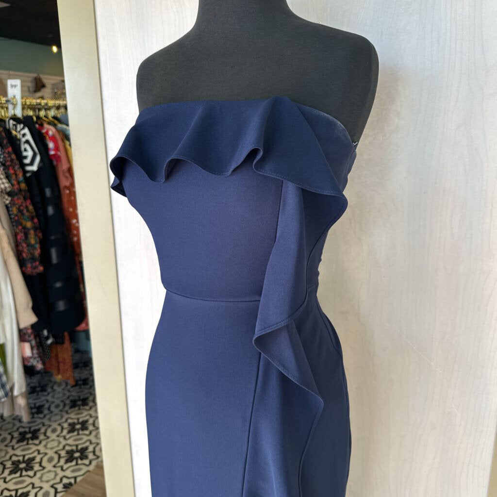 Lulus Strapless Crepe Ruffle Long Dress Small