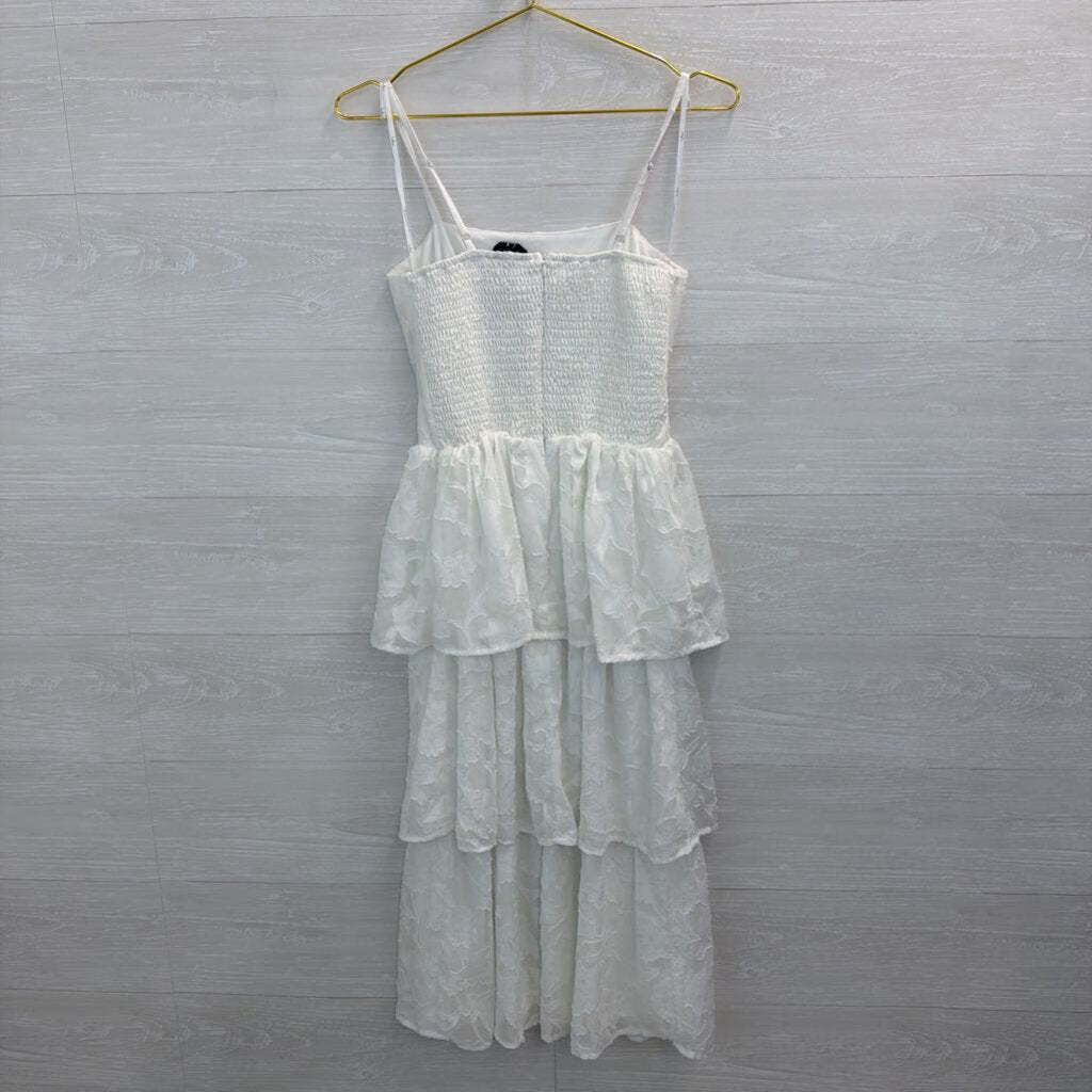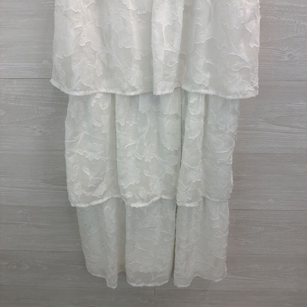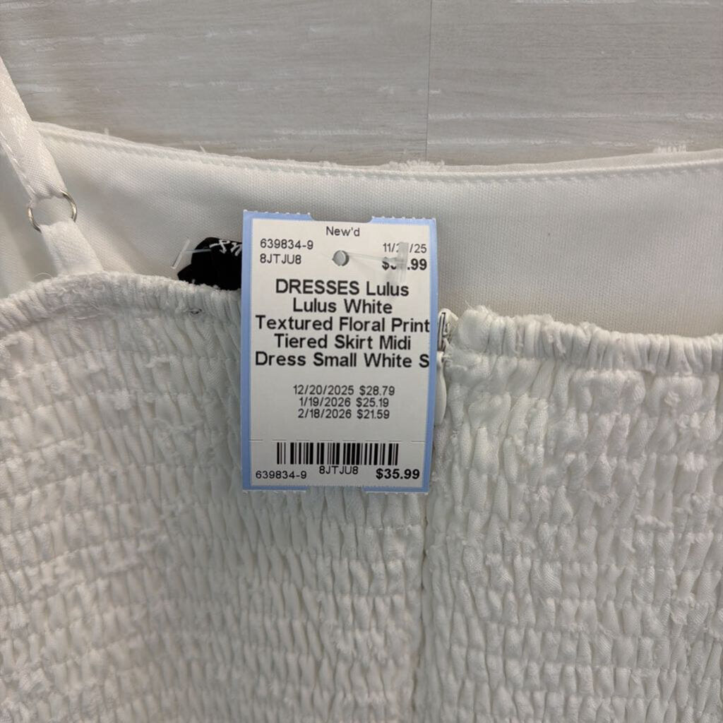 Lulus White Textured Floral Print Tiered Skirt Midi Dress Small