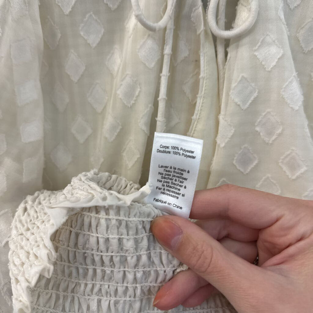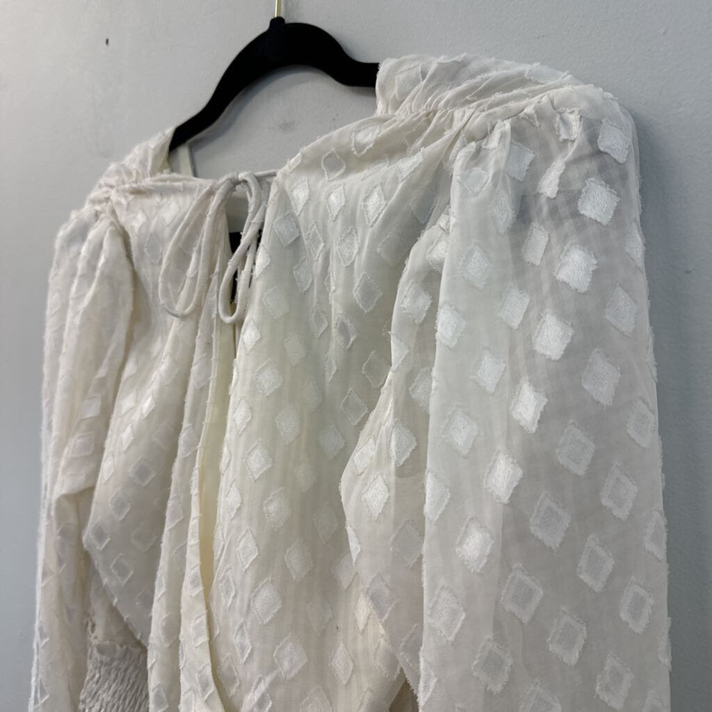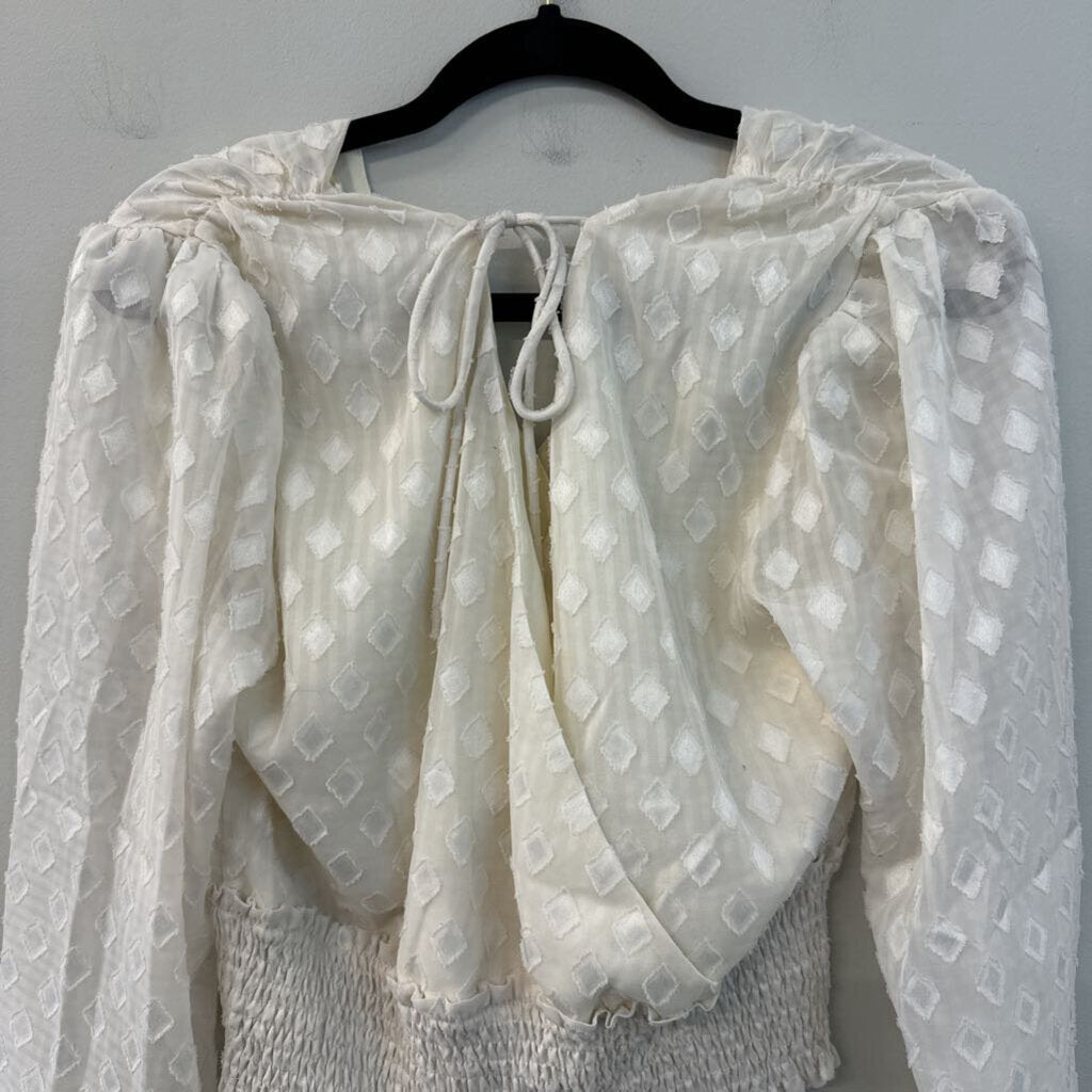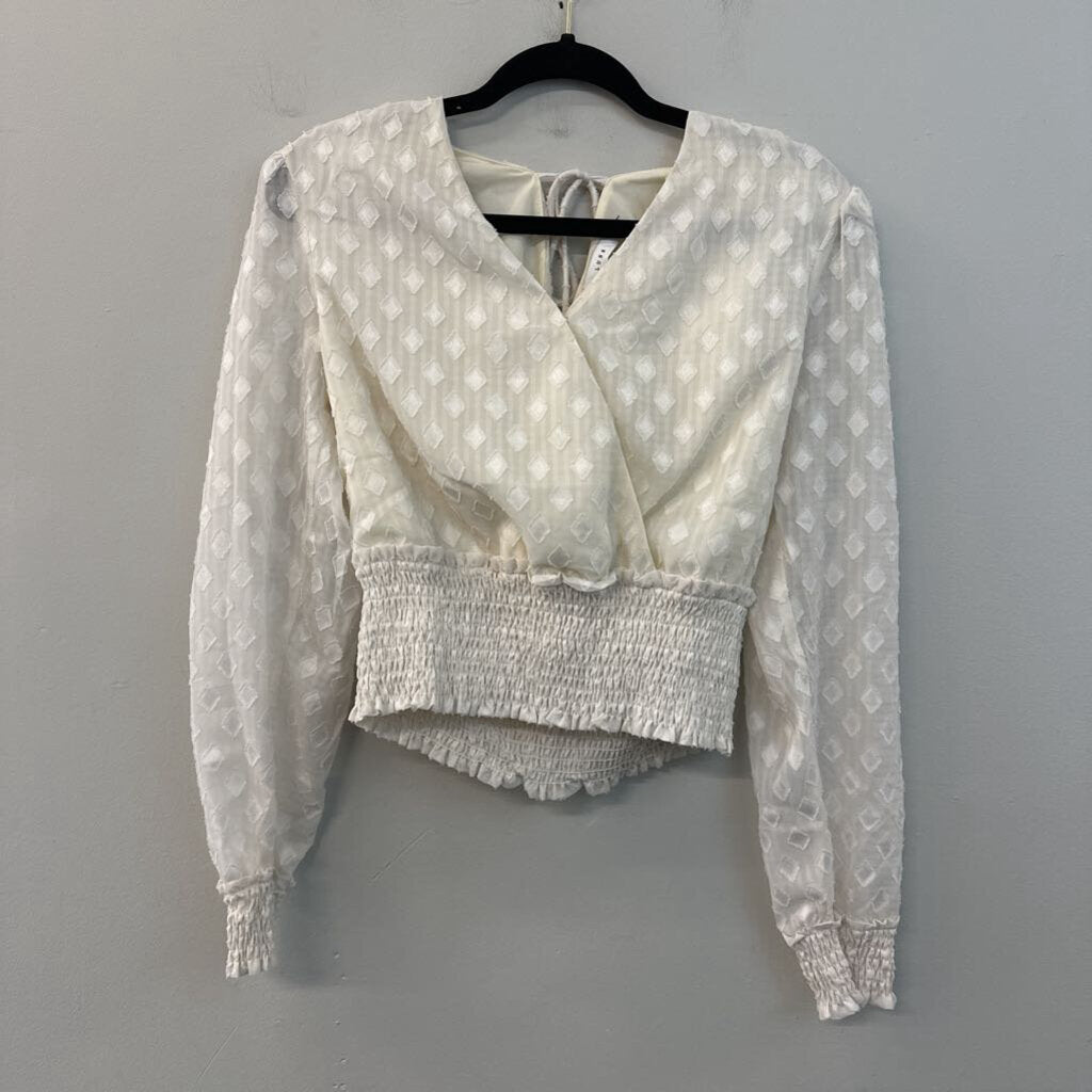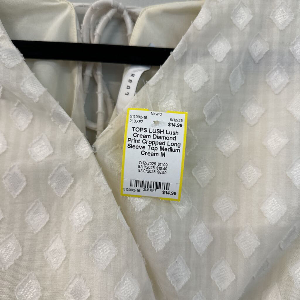 Lush Cream Diamond Print Cropped Long Sleeve Top Medium