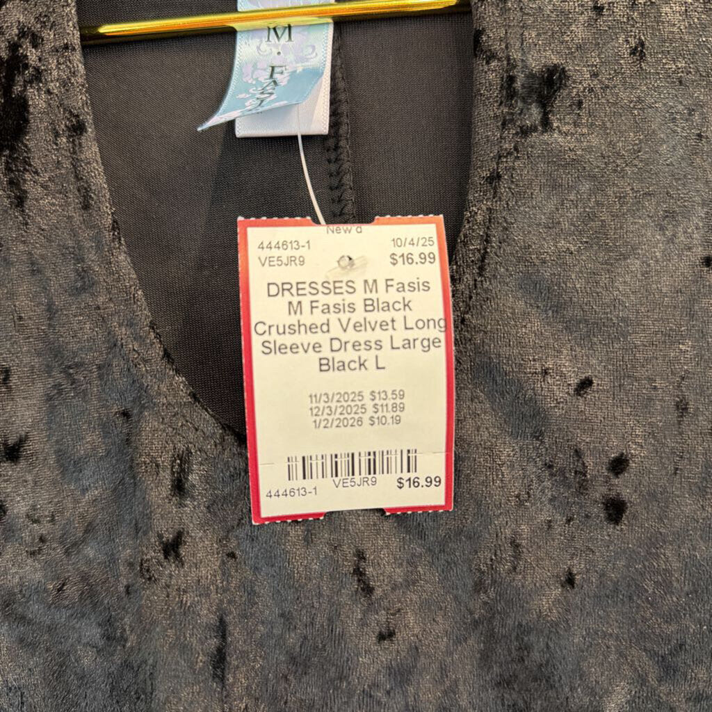 M Fasis Black Crushed Velvet Long Sleeve Dress Large