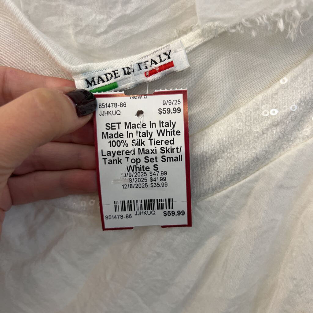 Made In Italy White 100% Silk Tiered Layered Maxi Skirt/ Tank Top Set Small
