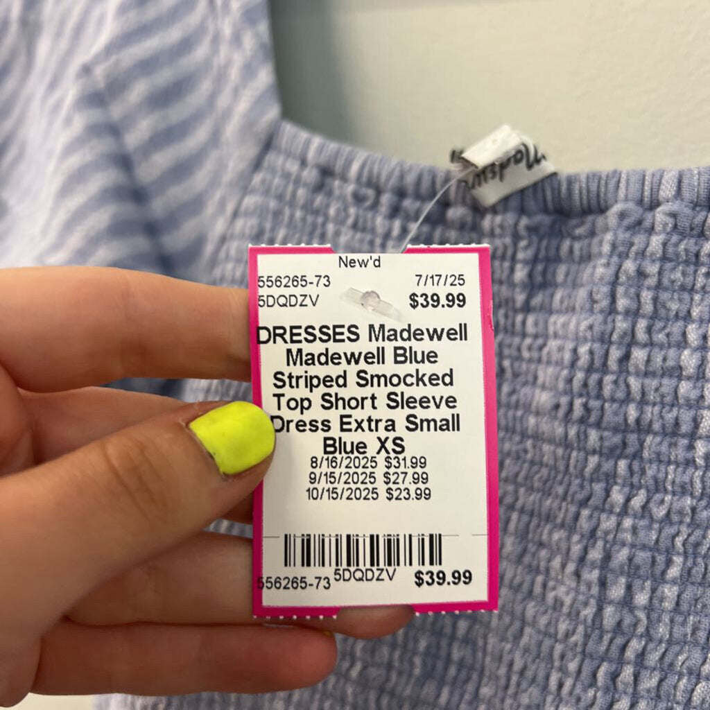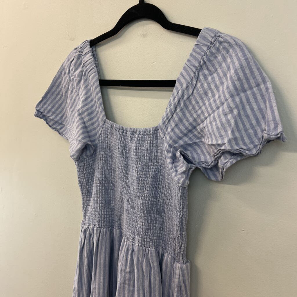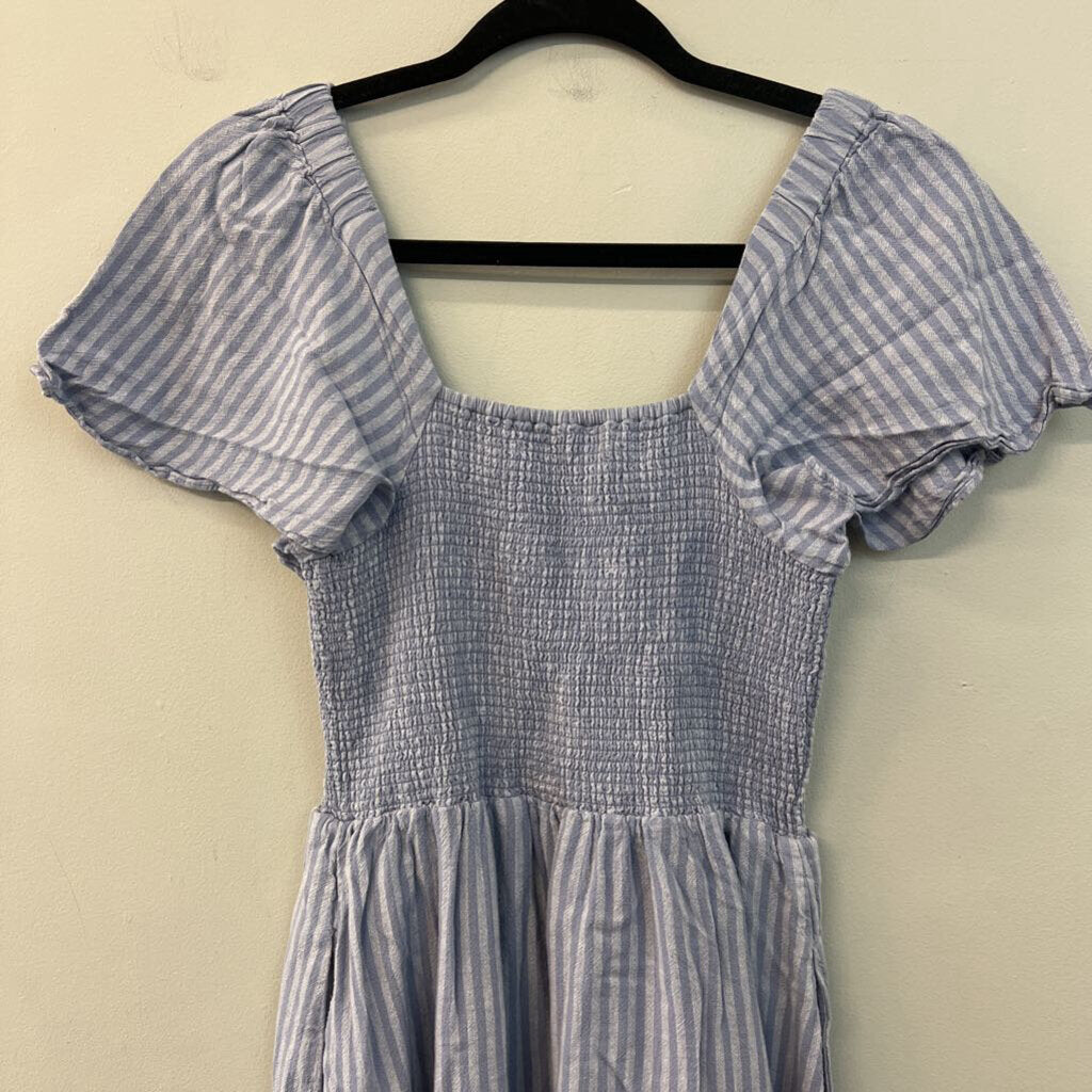 Madewell Blue Striped Smocked Top Short Sleeve Dress Extra Small