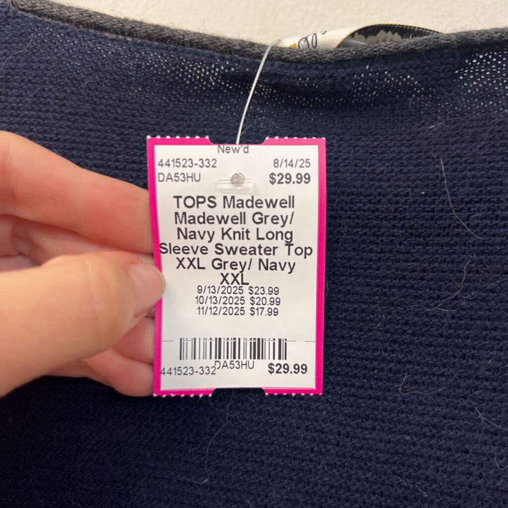Madewell Grey/ Navy Knit Long Sleeve Sweater Top XXL