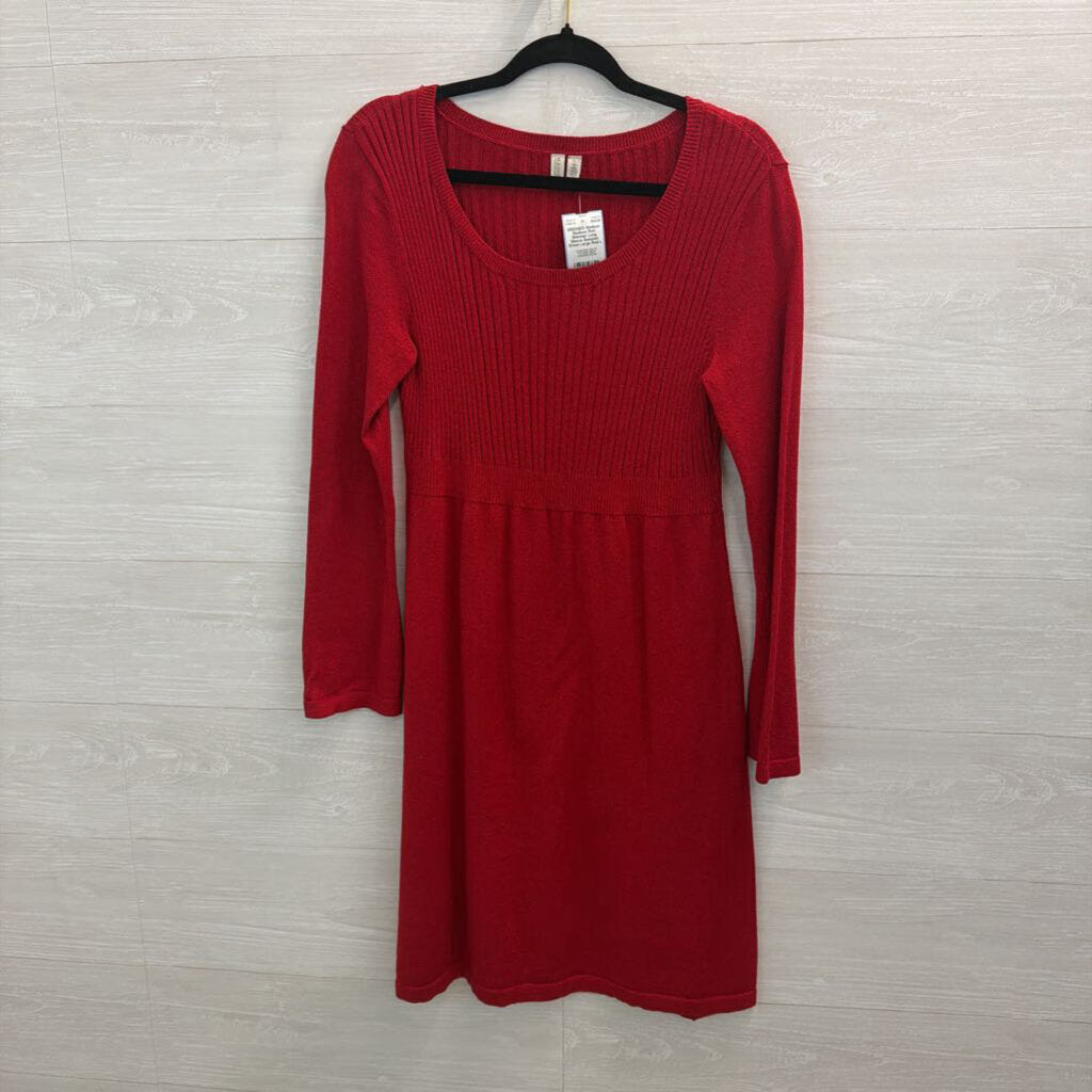 Madison Red Shimmer Long Sleeve Sweater Dress Large