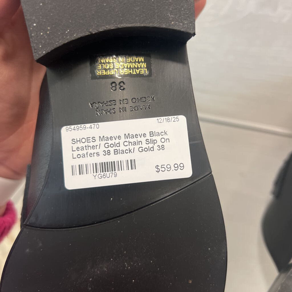 Maeve Black Leather/ Gold Chain Slip On Loafers 38