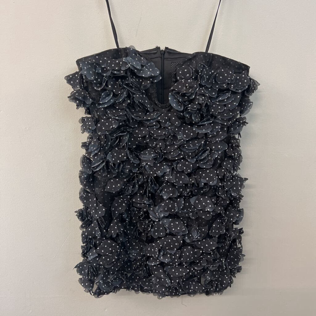 Maeve Black/ White Polka Dot 3D Flower Strapless Mini Dress 8