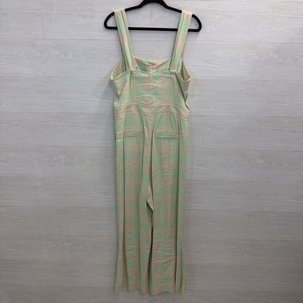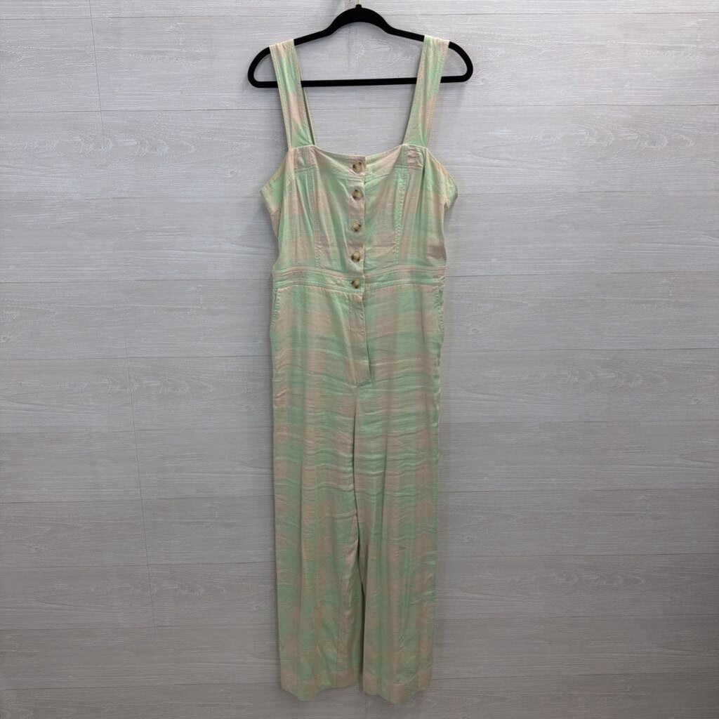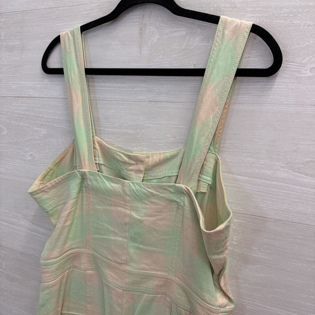 Maeve Green/ Cream Gingham Button Front Jumpsuit 12