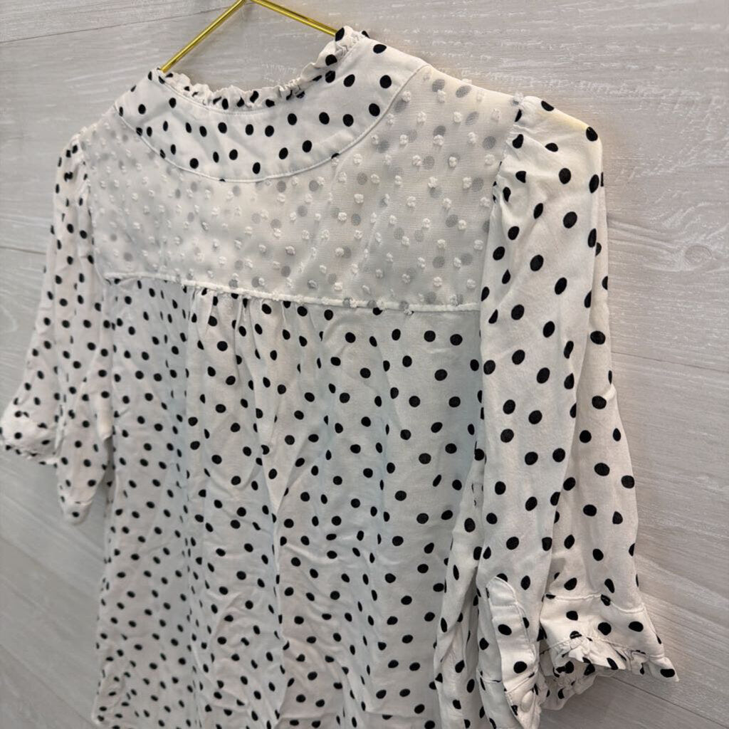 Maeve White/ Black Polka Dot Short Sleeve Top 8