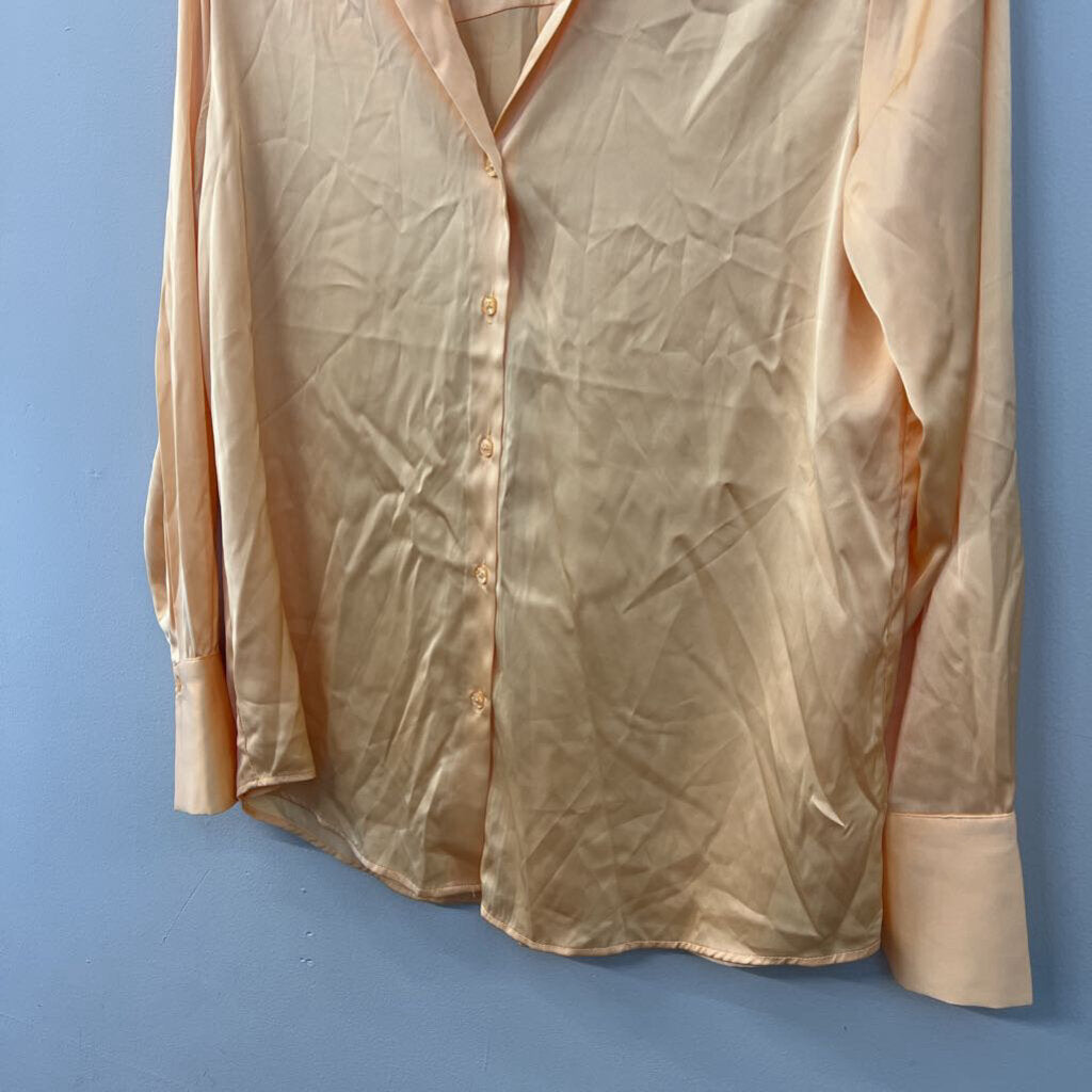 Maison d'Amelie Orange Silky Long Sleeve Button Down Top Small