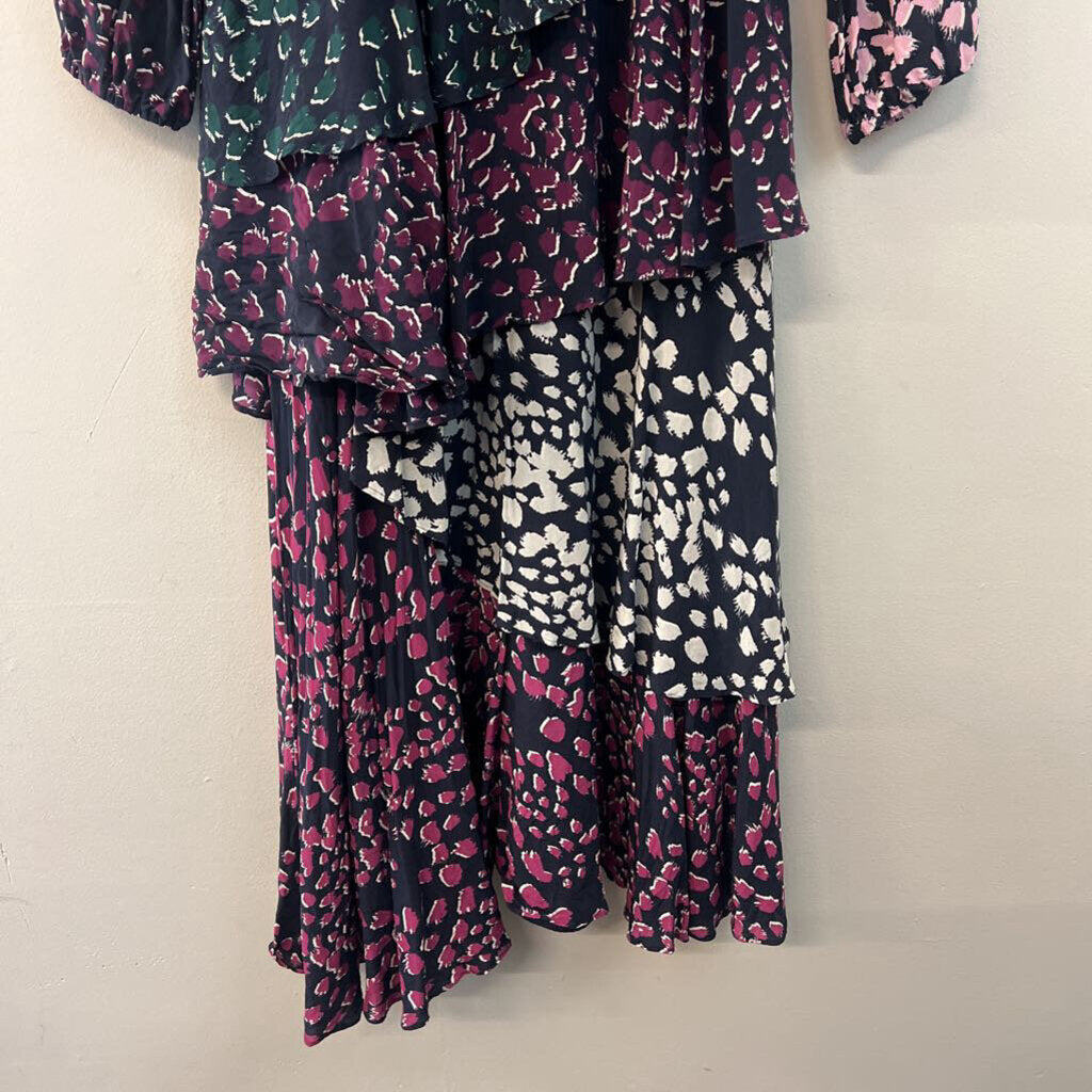 Marie Oliver Navy/ Multi Print Long Sleeve Tiered Bottom Maxi Dress 2