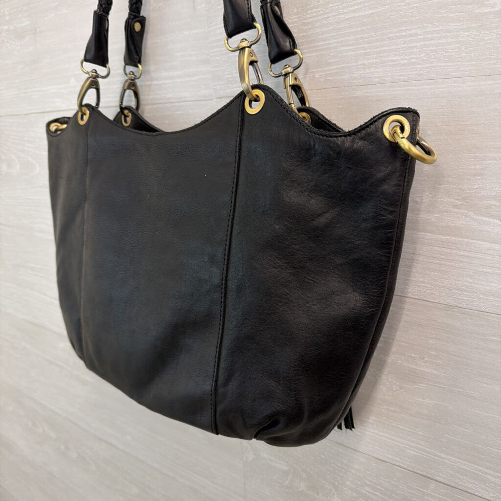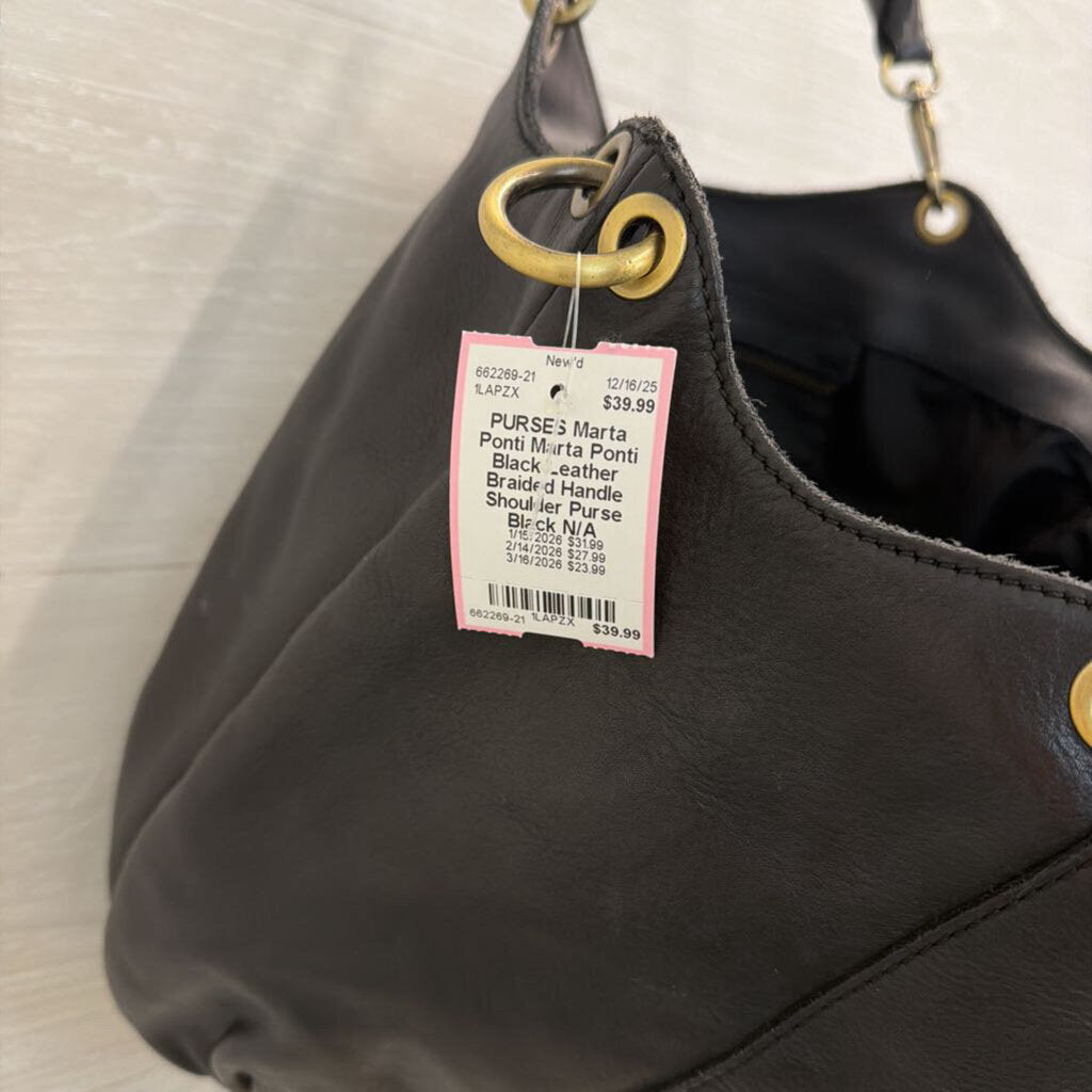 Marta Ponti Black Leather Braided Handle Shoulder Purse