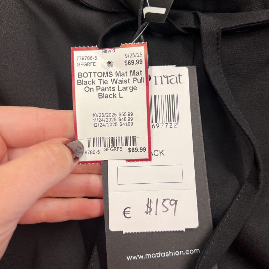 Mat Black Tie Waist Pull On Pants Large