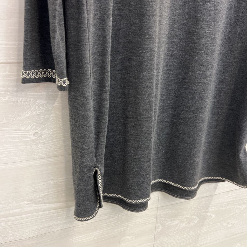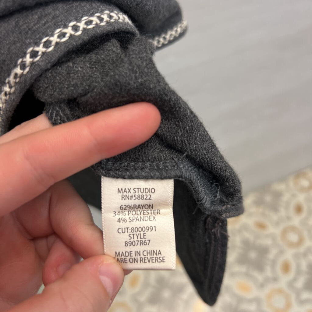Max Studio Grey/ Cream Edge Long Sleeve Dress Large