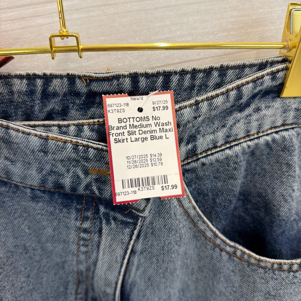 Medium Wash Front Slit Denim Maxi Skirt Large