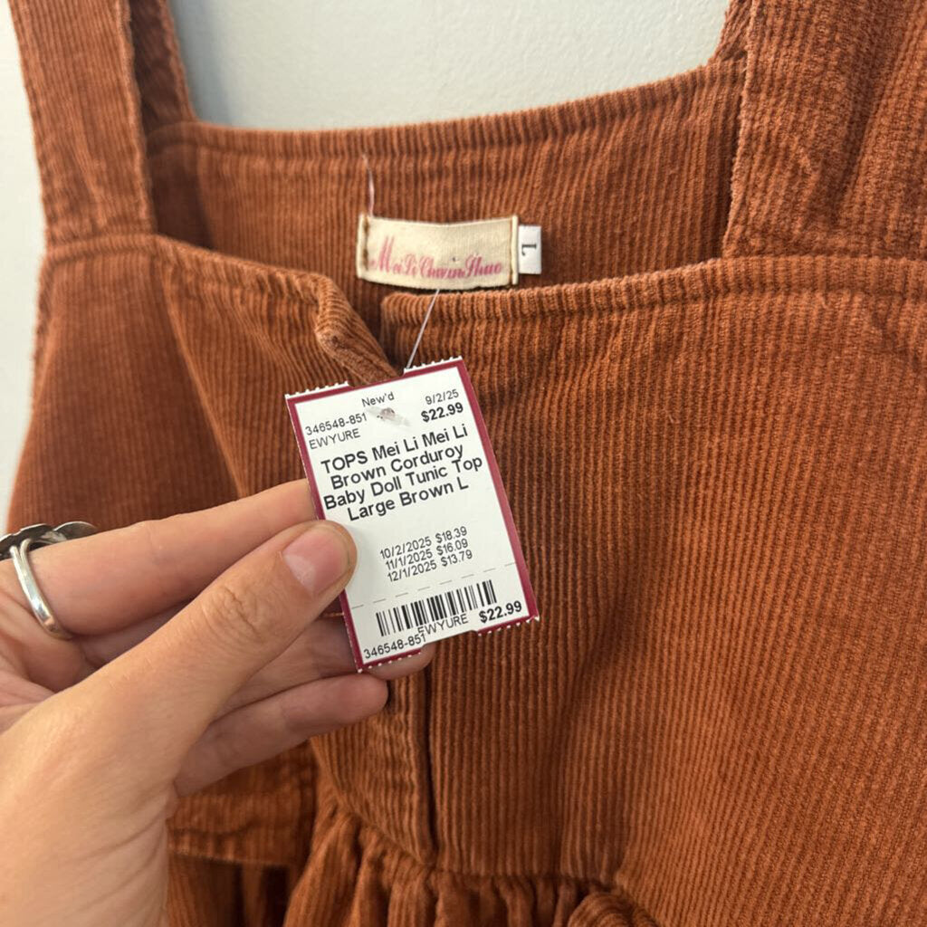 Mei Li Brown Corduroy Baby Doll Tunic Top Large