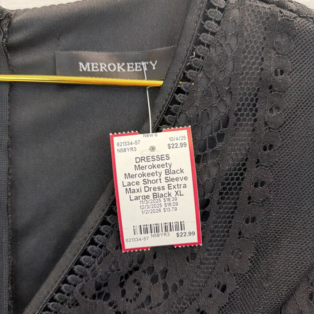 Merokeety Black Lace Short Sleeve Maxi Dress Extra Large