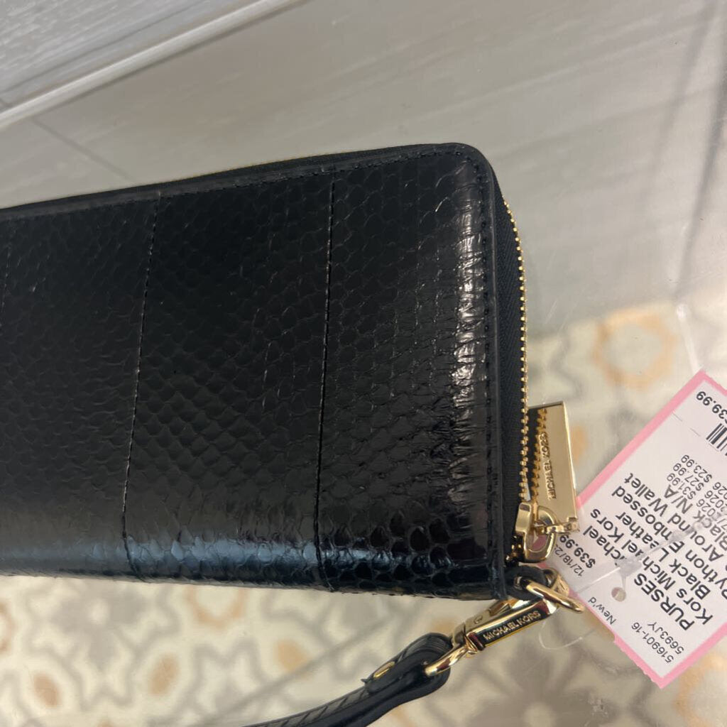 Michael Kors Black Leather Python Embossed Zip Around Wallet