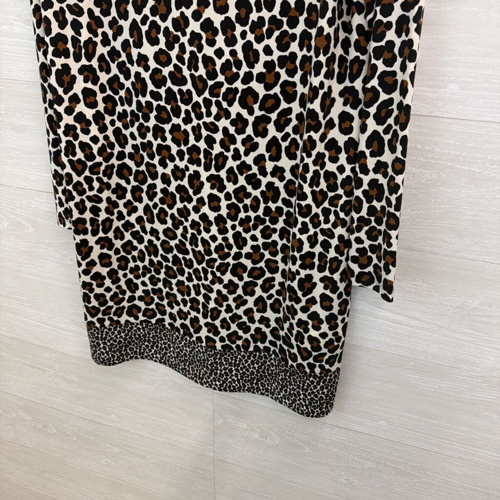 Michael Kors Brown/ Black/ Cream Leopard Print Long Sleeve Dress Extra Large