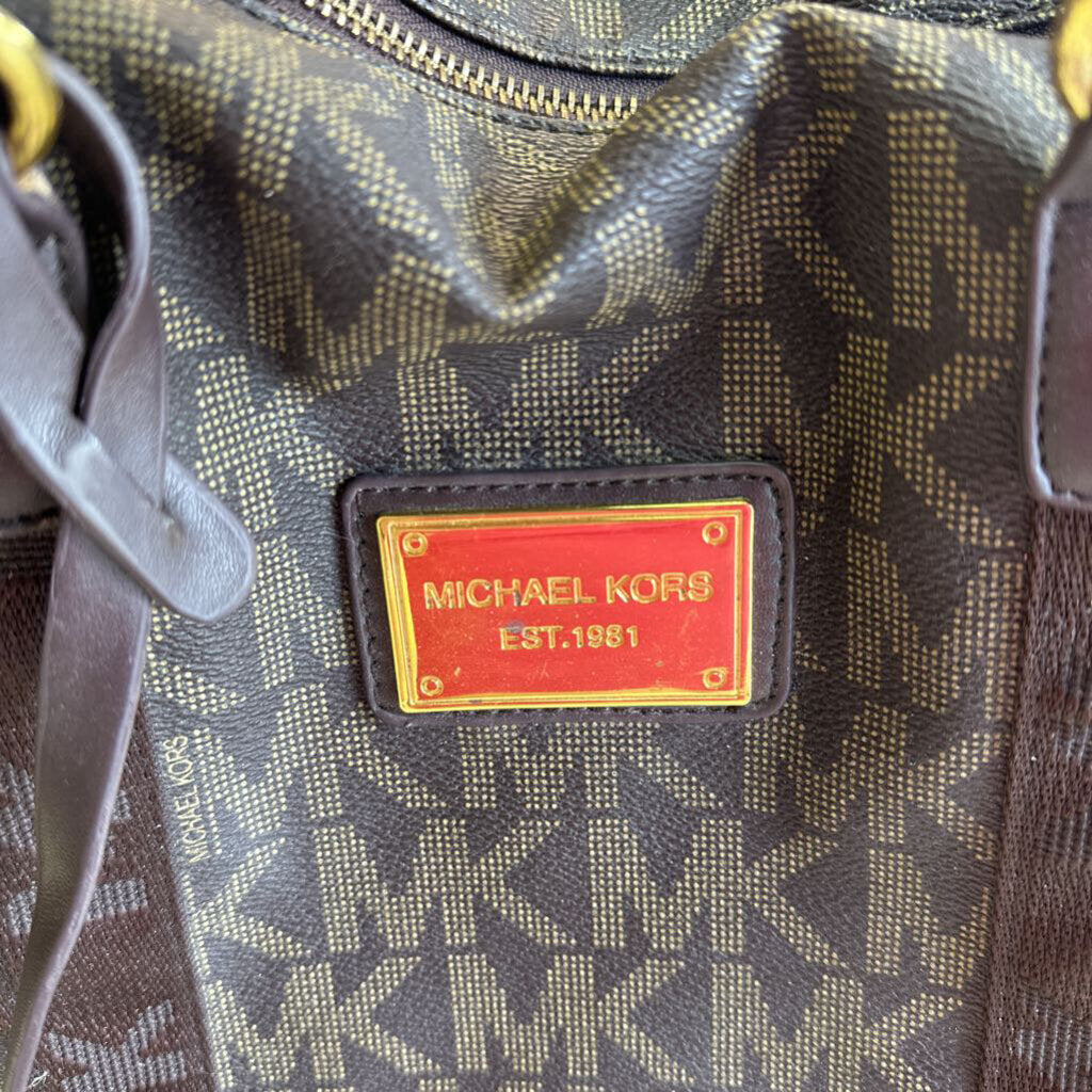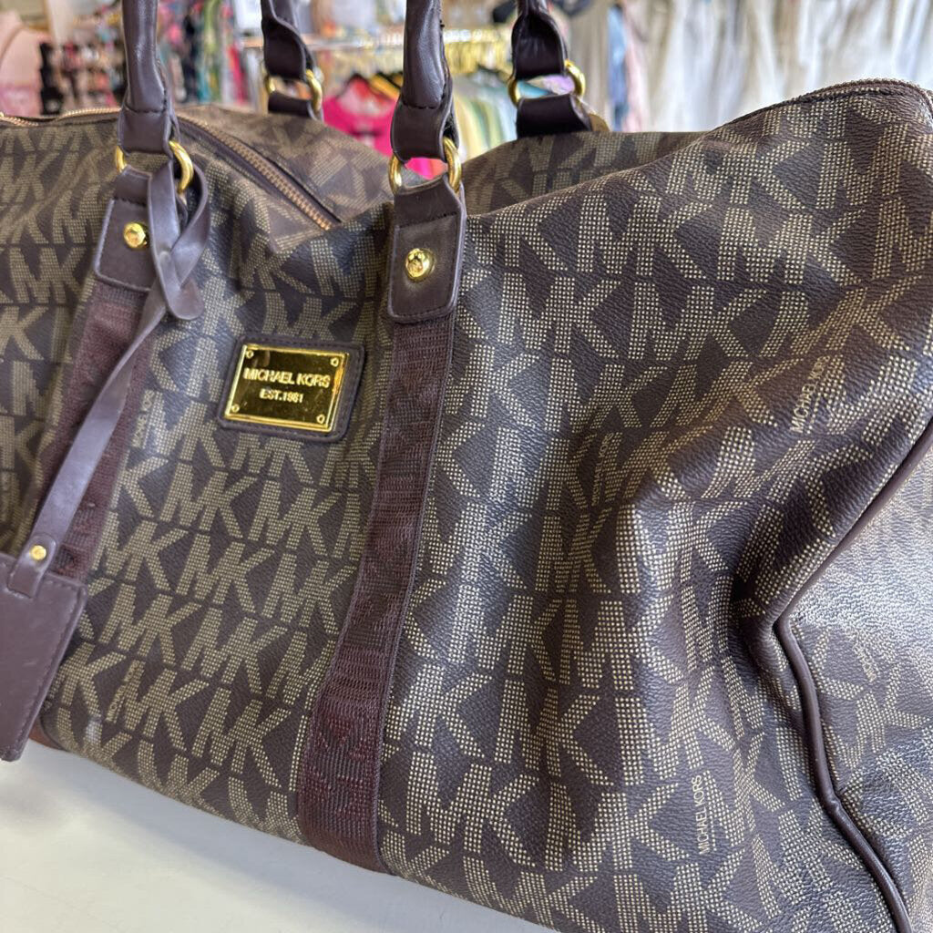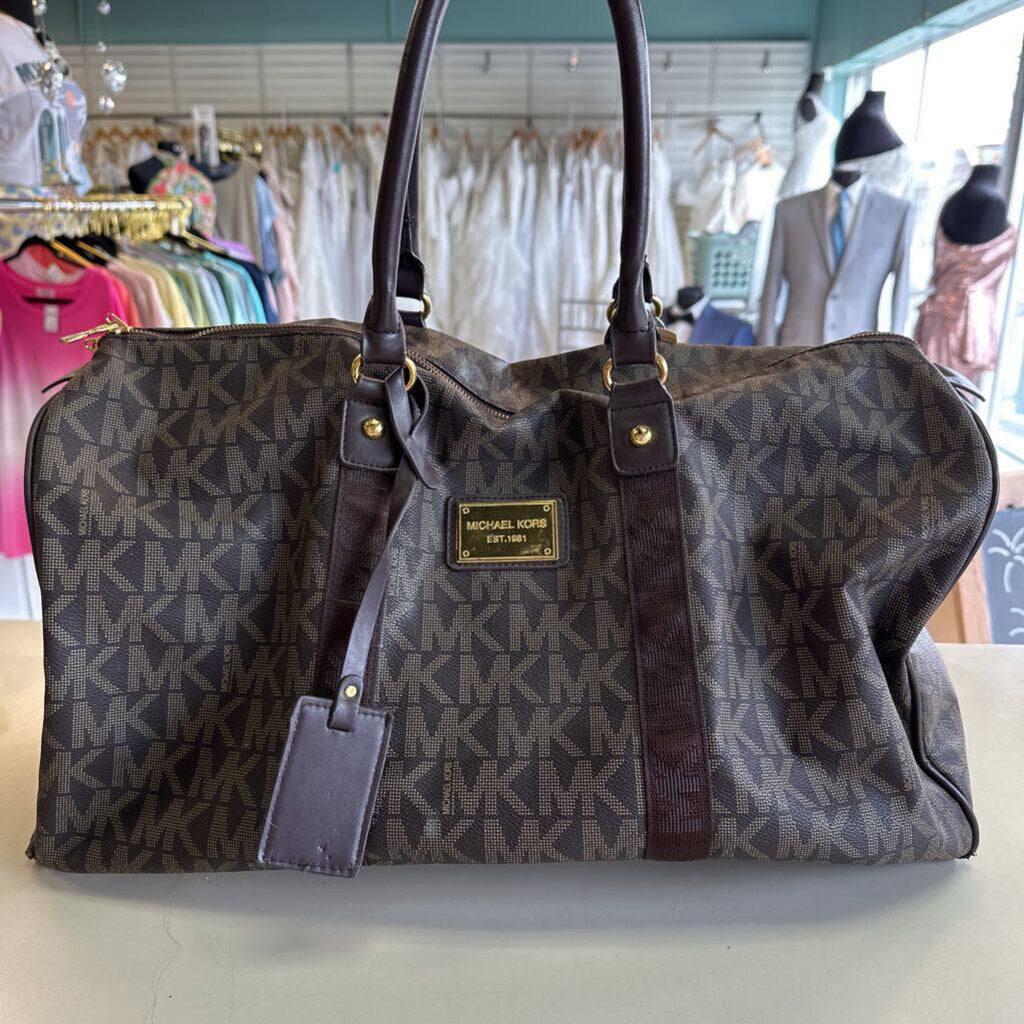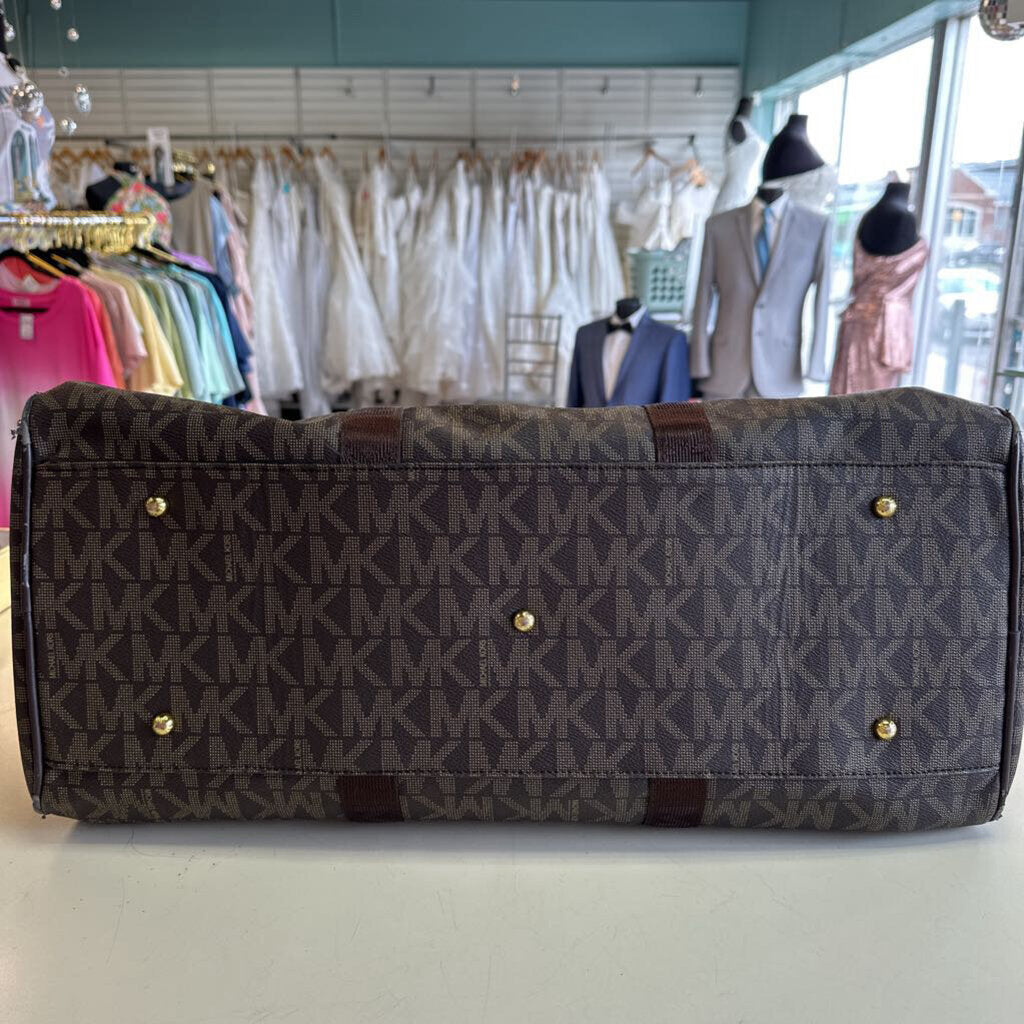 Michael Kors Brown Leather Signature Logo Weekender Bag