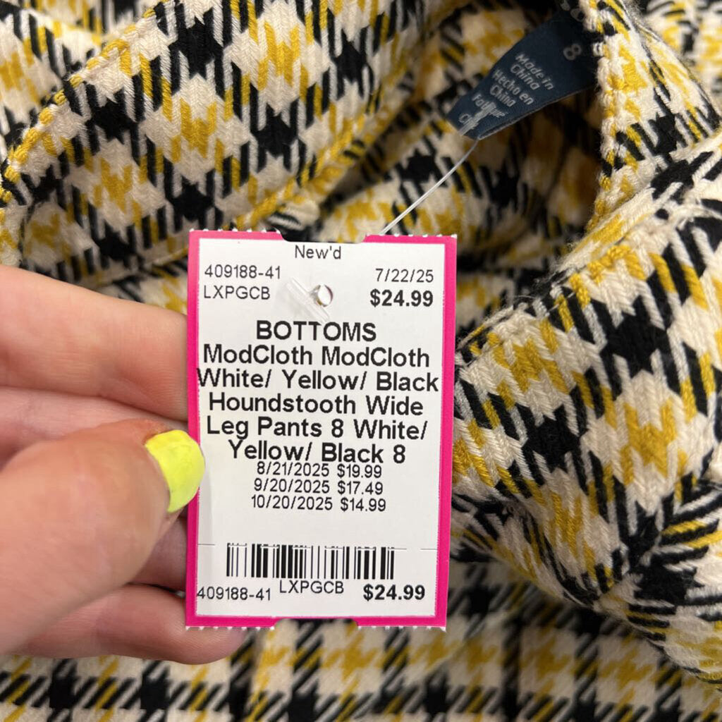ModCloth White/ Yellow/ Black Houndstooth Wide Leg Pants 8